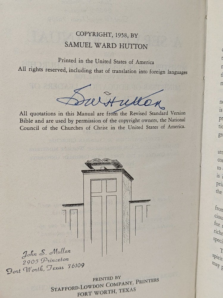Signed First Edition, A Service Manual: by Samuel Ward Hutton, 1958. Condition is Very Good. Shipped with USPS Media Mail....