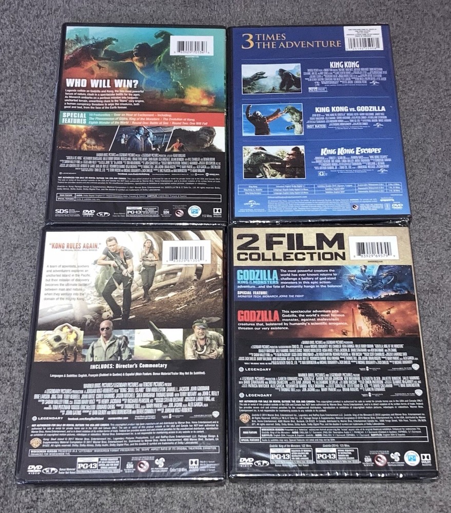 Godzilla Vs Kong/Skull Island/King Kong/Escapes/Monsters DVD 7 Movies - NEW.