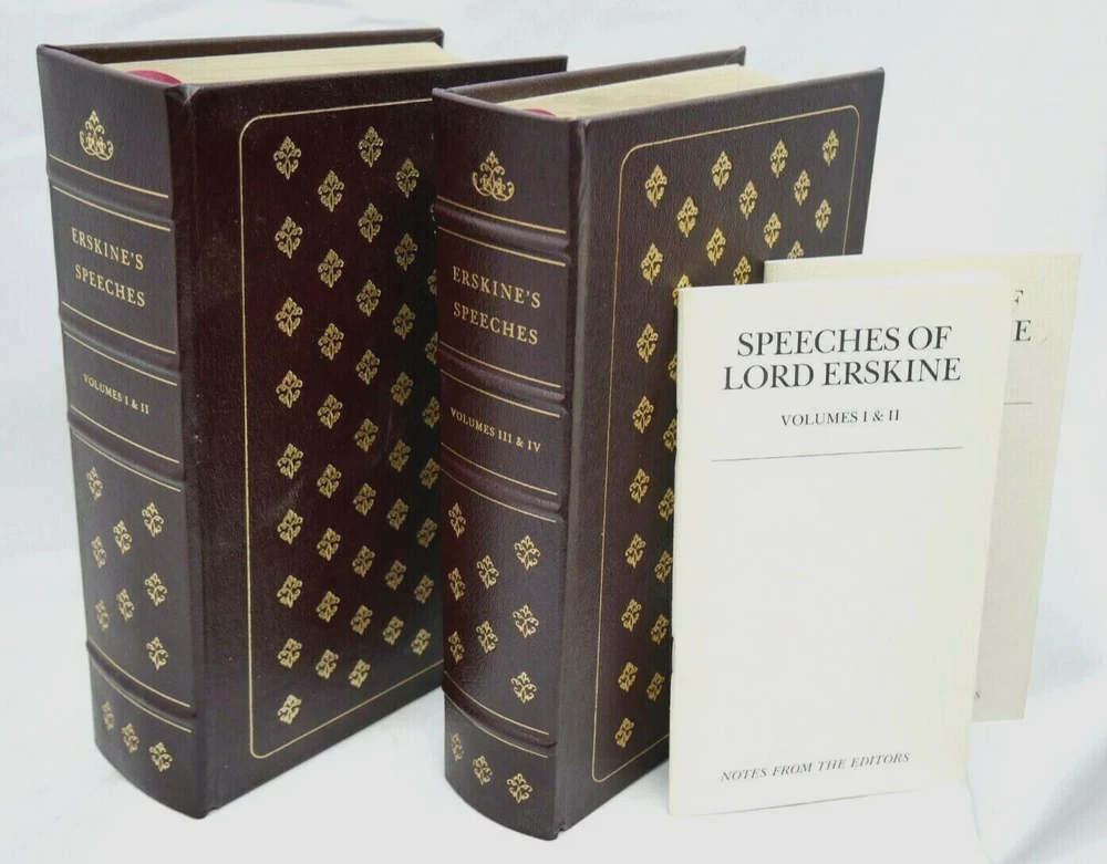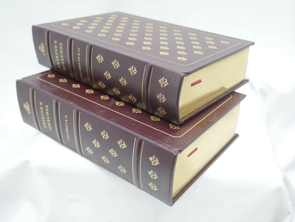 Leather-bound- -Speeches of Lord Erskine Volume 1 and 2 Legal Classics Library Easton press 1984 measures 9 1/4 x 6 1/4 x 2 3/8 books are in excellent shape! see pics of the actual books you are buying buy them now for $49.00 or make an offer! I have many more books from this series- I am happy to combine them to save on shipping costs- I ship out quickly from Las Vegas Nevada!