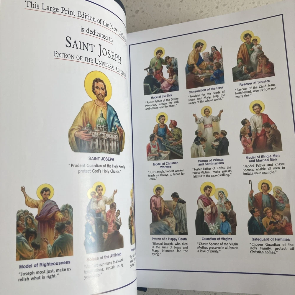This beautiful St. Joseph Bible is a treasure! The large red-letter text is easy to read, and the blue leather cover feels luxurious in your hands. It’s in pristine condition—clean pages, sturdy binding, and even the family record section looks untouched. Perfect for personal devotion or as a meaningful gift. The quality and presentation make it feel truly special. Highly recommend!