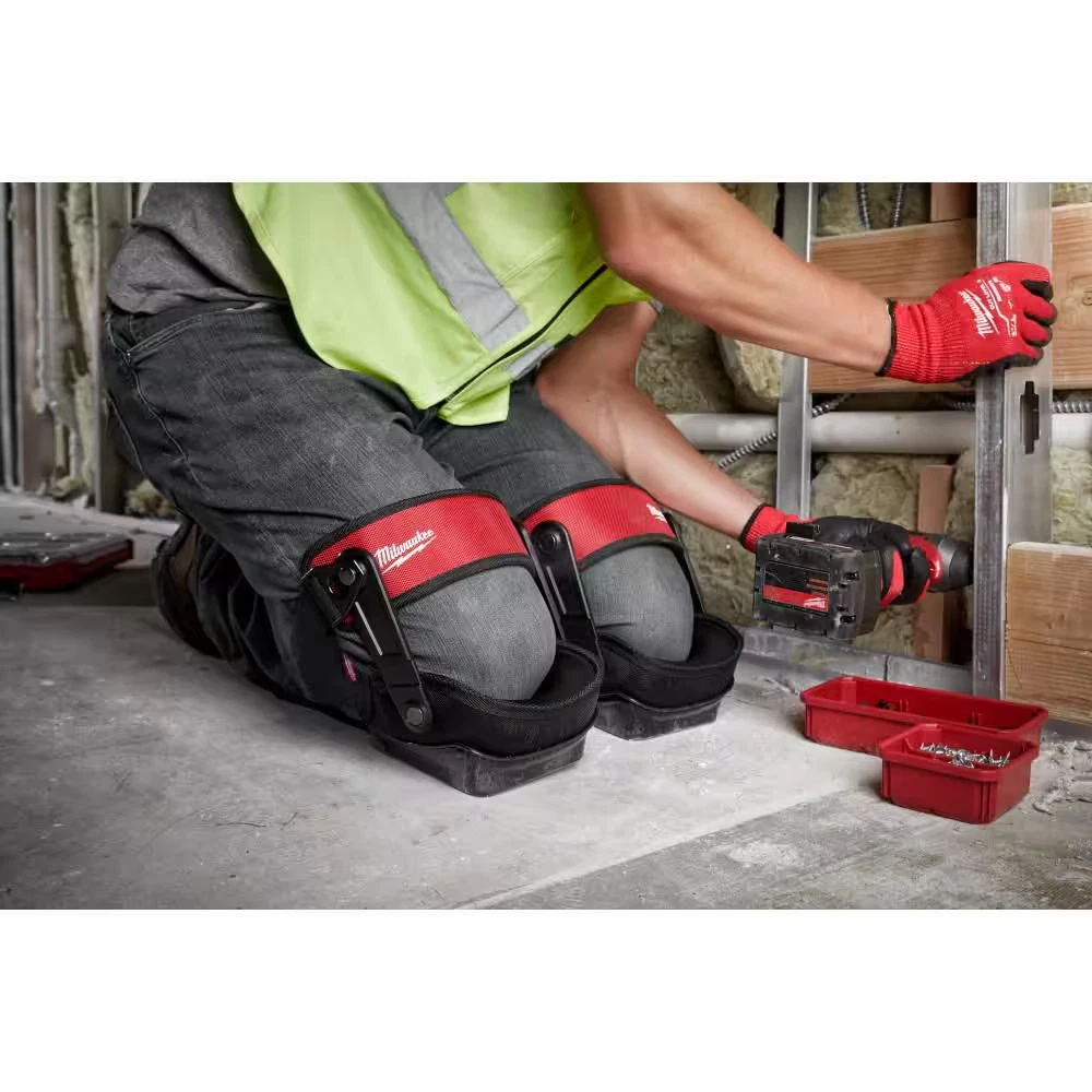 The large flat cap provides increased stability on the jobsite Layered gel absorbs pressure and supports the knee for comfort Milwaukee gel knee pads are built with a hinged thigh strap The MILWAUKEE Stabilizer Performance Knee Pad is designed to be the most secure with maximum comfort. The large flat cap provides increased stability while working in a stationary location. The layered gel knee pad absorbs pressure and supports the knee for ultimate comfort all day long. These knee pads are built with a hinged thigh strap for better mobility for easier movement around the jobsite. Large Flat Cap, Increased Stability Layered Gel Absorbs Pressure & Supports Knee Hinged Thigh Straps: Better Mobility Pressure Reducing Foam Maintains Shape Robust, Durable Cap for Longest Life 2 Secure Adjustable Buckles Dual Material Lower Strap Cushioned Adjustable Thigh Strap Durable Metal Rivets Open Cell Foam Third Party Tested Includes: (1) Pair of Stabilizer Knee Pads (48-73-6051) Includes: Pair of Knee Pads
