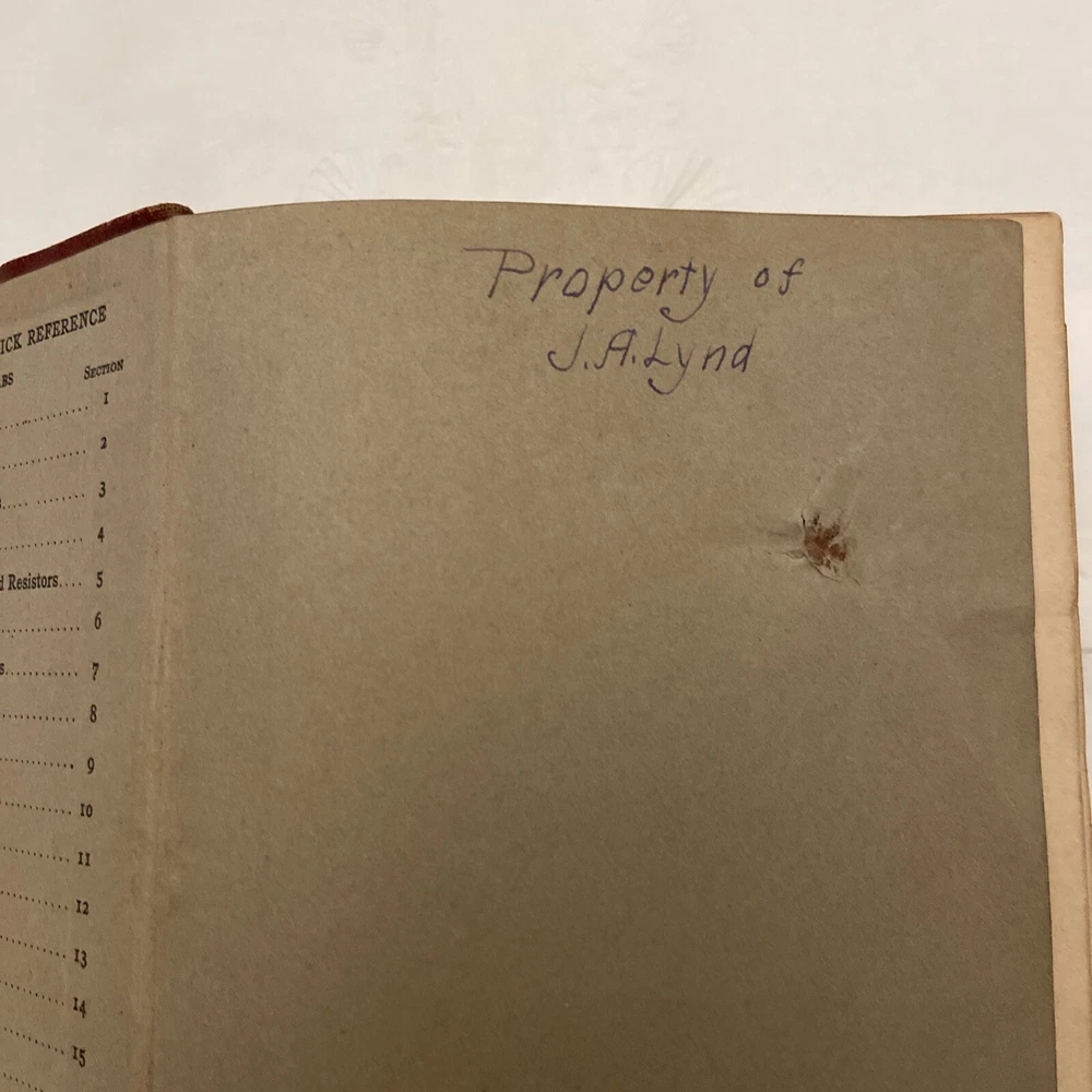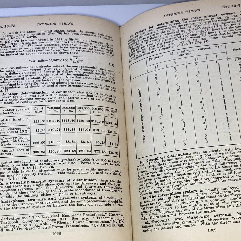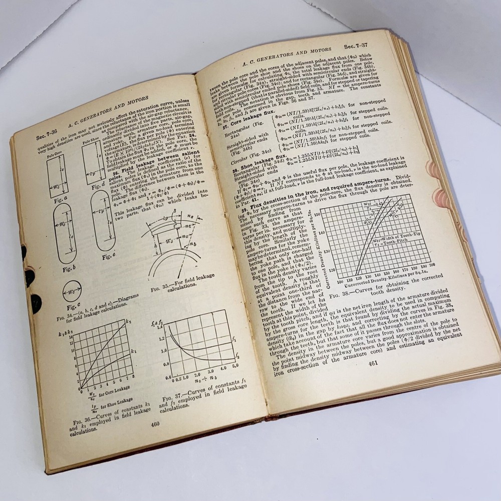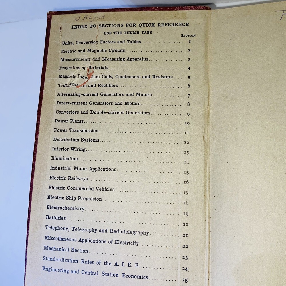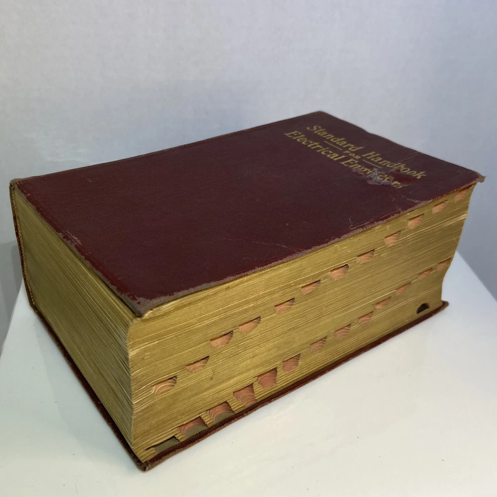 Standard Handbook For Electrical Engineers 4th edition 1917 McGraw Hill. Book cover is made of a painted fabric. Front cover has small piercing causing dents in pages up to 72. Yellowing of pages due to age. Name of owner written on inside front and inside back cover. All pages are intact and in good condition.