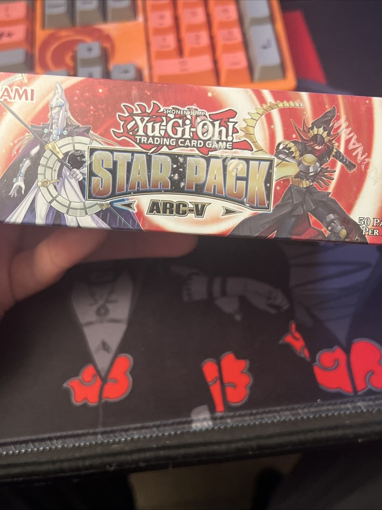 The product is a Yu-Gi-Oh! TCG Star Pack Arc-V Booster Box, manufactured by Konami in English and released in 2020. It contains cards made of card stock and is a 1st Edition, brand new and sealed. This booster box is designed for collectors and players of the Yu-Gi-Oh! Trading Card Game, featuring cards from the Star Pack Arc-V set. Each box offers a chance to expand and enhance one's card collection with new cards to use in gameplay or to add to a card collection.