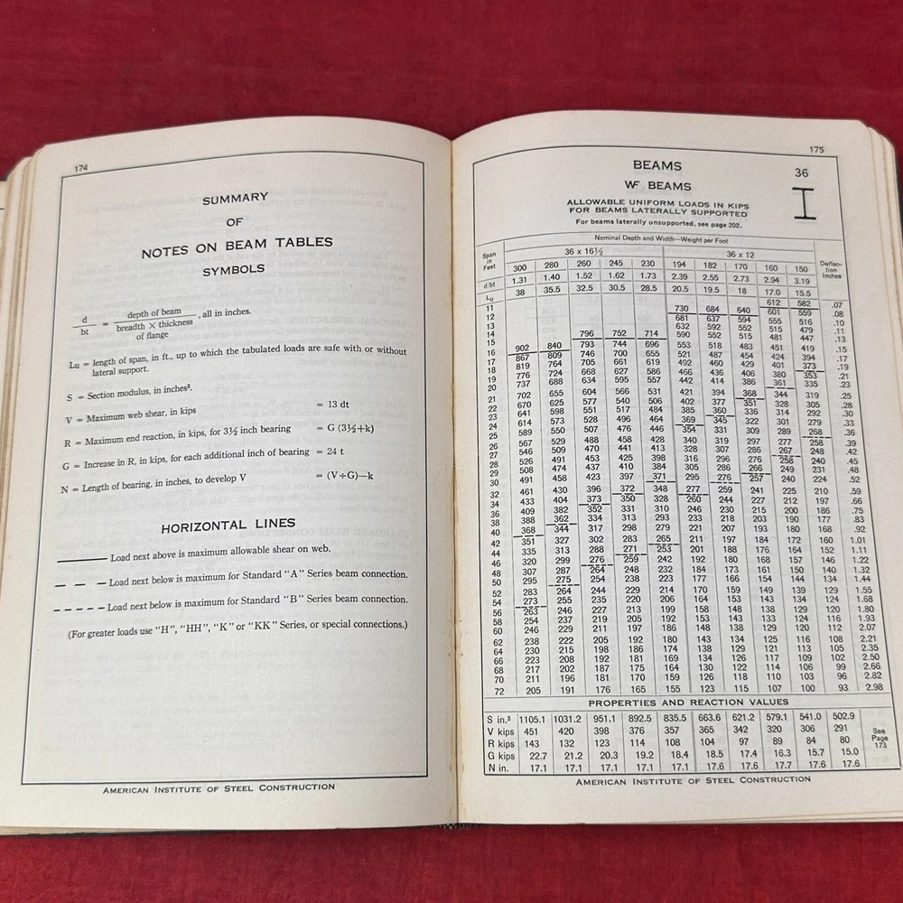This is a Steel Construction Manual 5th Edition 14th Printing on a Leather Bound AISC Book from 1952...