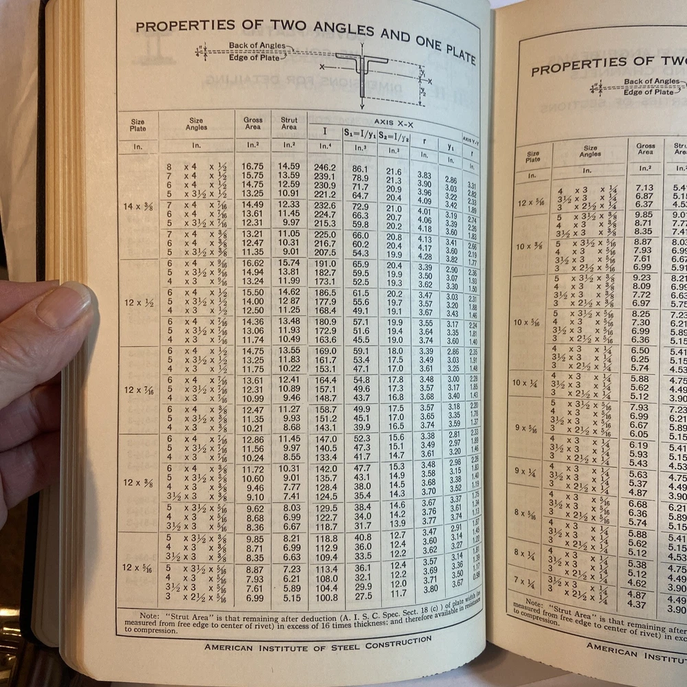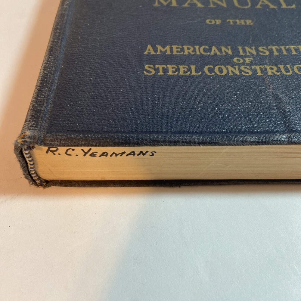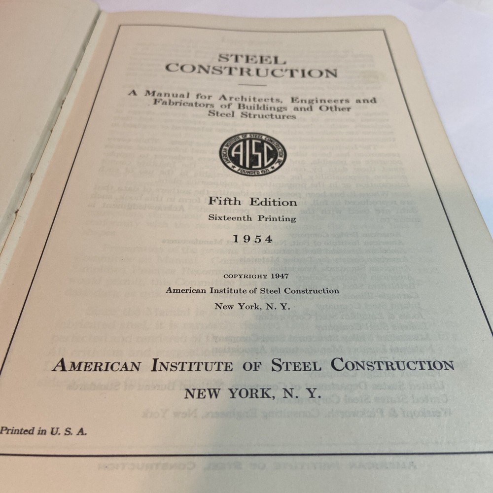 Steel Construction Manual of the AISC 5th Edition, 1947 This is a Preowned book and someone did write their name on the bottom of the pages as you can see in the photos.