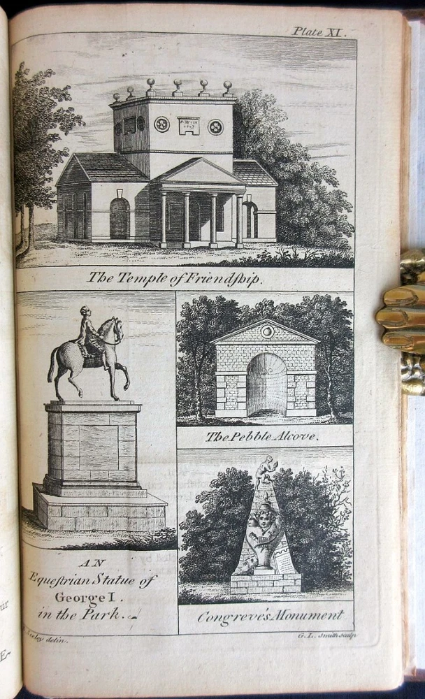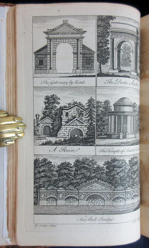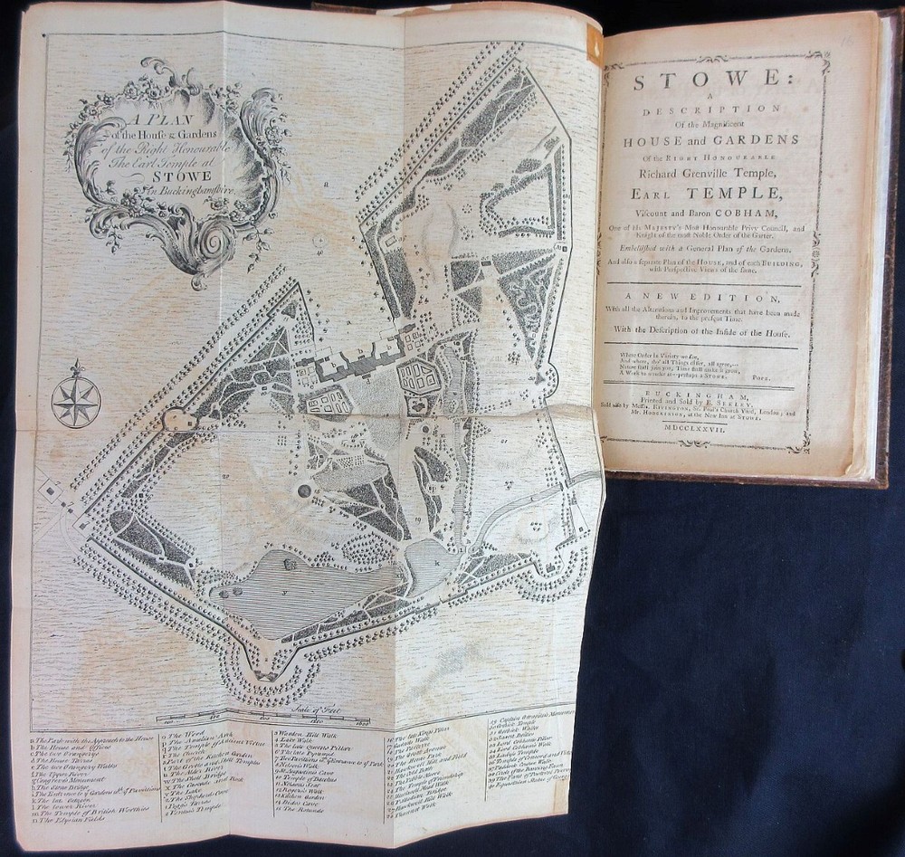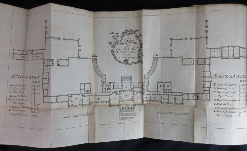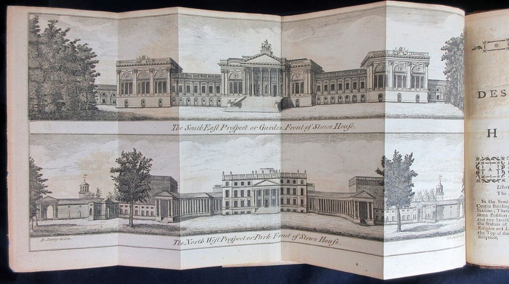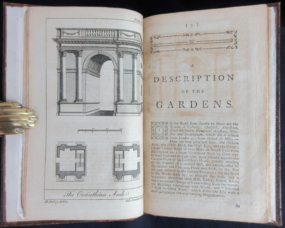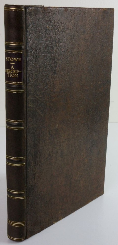 Stowe : a Description of the Magnificent House and Gardens of the Right Honourable Richard Grenville Temple, Earl Temple, Viscount and Baron Cobham, One of His Majesty's Most Honourable Privy Council, and Knight of the Most Noble Order of the Garter Seeley, B; Fairchild, W; Temple, R. G. Buckingham R. Seeley, Sold Also By Messrs. Rivington and Hodgkinson 1777 Leather 8vo 8" - 9" tall [i], 41, [ii], pp. 7 ff of plates. Folding plan at frontis, 11 single page plates in the text, folding plan of the house, folding plate of the prospects. A small octavo measuring 8.5 x 5" in old leather boards, rebacked spine with 5 raised bands, gilt ruling. Leather is worn but with a nice patina. Older pastedowns, first blank is quite browned with an 1869 owner's signature, frontis folding plate has repairs, browning and offsetting throughout, but the plates are still quite gorgeous. This book represented the beginning of a new trend in arts and design: house and garden tourism, familiar to fans of Jane Austen … “One of the most pivotal decisions in Pride and Prejudice was when Elizabeth Bennet agreed to visit Pemberley’s gardens and grounds with the Gardiners, only to suddenly encounter Mr. Darcy, who was not slated to return until the next day, Such a visit to grand estates by the well-heeled and more common folk like Elizabeth and her aunt and uncle were quite common in the 18th century. They would have purchased an inexpensive guide book at a local inn or town, and read information about the paintings and objects inside the great houses, and a description of the gardens and their rustic buildings and ornaments. Stowe in particular was a destination point for visitors. Its magnificent gardens and grounds were a model and inspiration for other gardens of the Romantic era, which echoed the movement’s reverence for nature and aesthetic ideals” [Jane Austen’s World]“The practice of opening a private garden to the public at designated times, often when the family was not in residence, became common in the eighteenth century, and some of the most popular sites began to publish guidebooks. In 1732 Gilbert West (1703-1756) had published a long poem praising the garden at Stowe, but the first true guidebook was published in 1744.” [referring to Stowe in Fisher exhibition: How Does My Garden Grow: The Education of a Gardener] Richard Grenville-Temple (1711-1779) was an English statesman, the brother-in-law of William Pitt, under whom he served as the first lord of the Admiralty. He inherited the estate of Stowe from his mother in 1752. "Stowe, former estate of the Temple family, the dukes of Buckingham (the title became extinct in 1889) , in Buckinghamshire, England. The mansion was begun in 1697 and was remodeled in 1775. It is now the site of Stowe School. Among the architects, designers, and decorators who worked on the house were Sir John Vanbrugh, Robert Adam, Grinling Gibbons, and William Kent. The estate’s famous gardens date from the 18th century and include several classical temples designed by James Gibbs. The gardens were originally formal but were gradually transformed into a landscaped park." (Britannica). A lovely copy with wonderful illustrations. WE ARE LOCATED IN CANADA but we can ship using USPS International Customers -- we may be able to ship more cheaply than we show - please e-mail us to see what we can offer to your location. US Customers - We ship twice or more a week using the US Postal Service via our courier from Canada to our mailing address in New York and then on to US addresses.We are able to offer competitive rates with this service, but if you require quicker shipping, please inquire. For books over $799 we may ship via CanadaPost from Toronto. Canadian customers -- we may have to charge HST/GST for Canadian purchases (generally 5% for books). However, shipping is generally lower than on ebay's shipping cost calculator. Email me with your province and I'll be happy to calculate HST and shipping. We are happy to combine shipping! For our international customers, import duties, taxes and charges are not included in the item price or shipping charges. These charges are the buyer's responsibility. Please check with your country's customs office to determine what these additional costs will be prior to bidding/buying. These charges are normally collected by the delivering freight (shipping) company or when you pick the item up -- do not confuse them with additional shipping charges. We really cannot show merchandise below value or mark items as "gifts" - it can get us into all kinds of trouble with customs. Since Brexit, shipping to the UK may require a VAT invoice. We have been selling books for over 20 years and pack and ship them with care. Thanks for bidding and thanks for being a fellow book lover. See our other listings for more unusual and rare books.