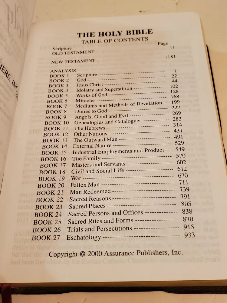 This is a pre-owned Subject Bible Complete Topical Study Reference Edition KJV 2000 Assurance Publisher Holy Bible. Please see pics for condition. The shipping price is for the lower 48 States.