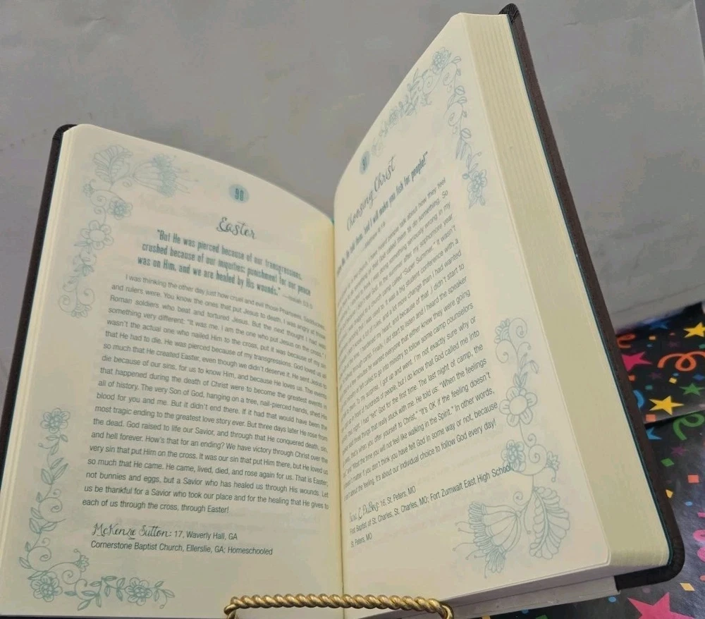 Dive into the pages of "365 Daily Devotions By Teen Girls For Teen Girls" and experience a year's worth of inspiring readings, crafted specifically with young adults in mind. Published by B&H in 2017, this devotional offers a fresh perspective on faith and daily life, tackling topics relevant to teens and providing comfort and guidance through the challenges of growing up. The elegant leather-bound edition adds a touch of sophistication and durability, making it a perfect gift or a cherished addition to any collection. With its focus on Christianity and life help, this devotional is an ideal companion for those seeking spiritual growth and personal development. ISBN: 9781434714309.