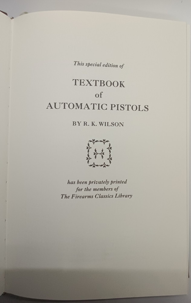TEXTBOOK OF AUTOMATIC PISTOLS by R.K. Wilson - NRA Firearms Classics Library Very Good condition - Cover shows no signs of wear; Pages are in excellent condition, free of tears, creasing, or markings ...