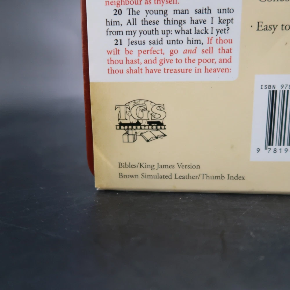 TSG Large Print Thumb Index Compact Bible. King James version. Brown faux leather cover. We do our best to describe our items accurately. Feel free to message us if you notice any errors or can provide additional information. We combine shipping. Please let us know if you are ordering multiple items. We ship internationally. Fast secure shipping. 100% positive feedback. Please check out our other listings and thank you for supporting a small family business.