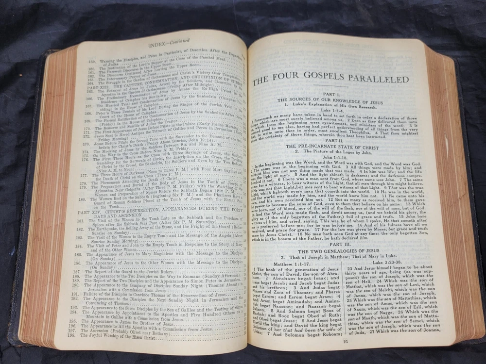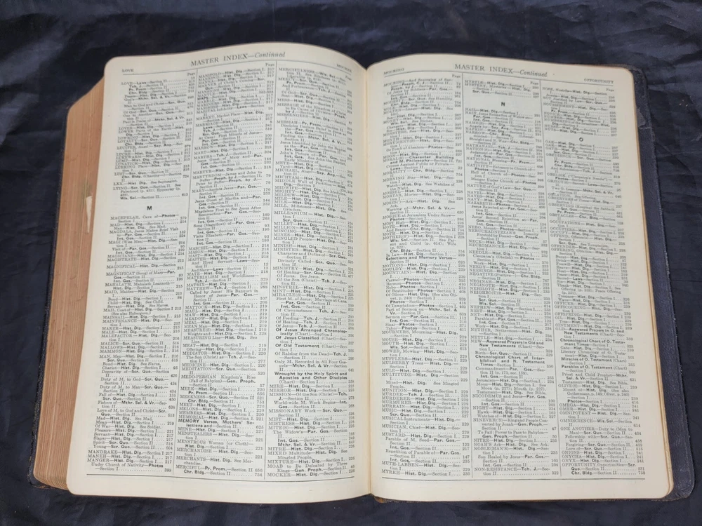 Good pre-owned vintage condition. READ : Front inside cover is loose, name written inside, several pages have damaged edges (approx 13 pgs). PLEASE look at all the photos carefully! This is a rare and valuable edition of "The System Bible Study" published by The System Bible Company in 1938. It is a soft black leather-bound book with a revised & enlarged edition of the original. Gold Gilt Pages. Please see photos for further description and condition. I do my best to accurately and honestly describe my items, but being human, I may miss something. Please contact me to discuss if you have any concerns before leaving feedback. Thank you for looking!