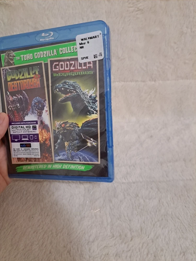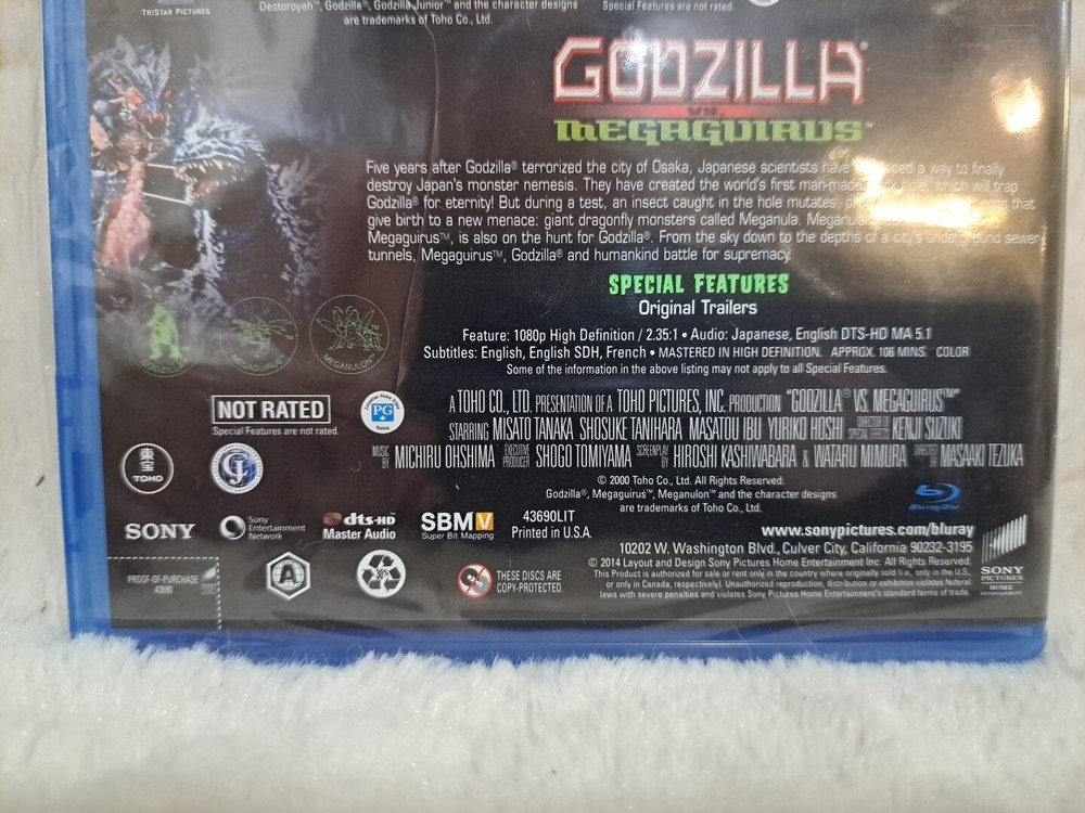 This Blu-ray disc features the epic battles of Godzilla Vs. Destoroyah and Godzilla Vs. Megaguirus, with a total runtime of 209 minutes. The disc is part of the ToHo Godzilla Collection, and is region coded for Blu-ray A. The movies are in the sci-fi-contemporary genre, and are rated NR. This item is not a former rental, and was manufactured in the United States by Sony Pictures. It is a must-have for any Godzilla fan, and is perfect for adding to your collection. The plastic is torn. This is a New disc! Visit and follow the store for more great finds!!