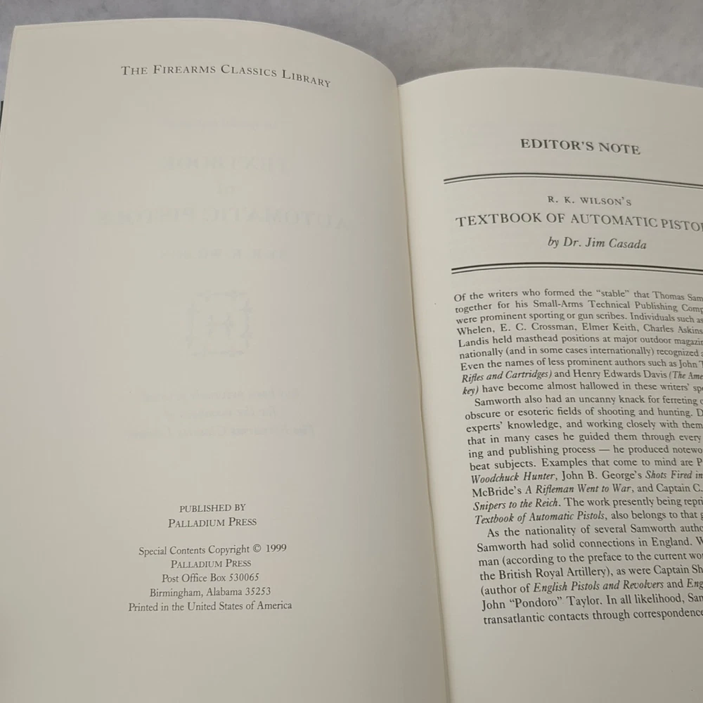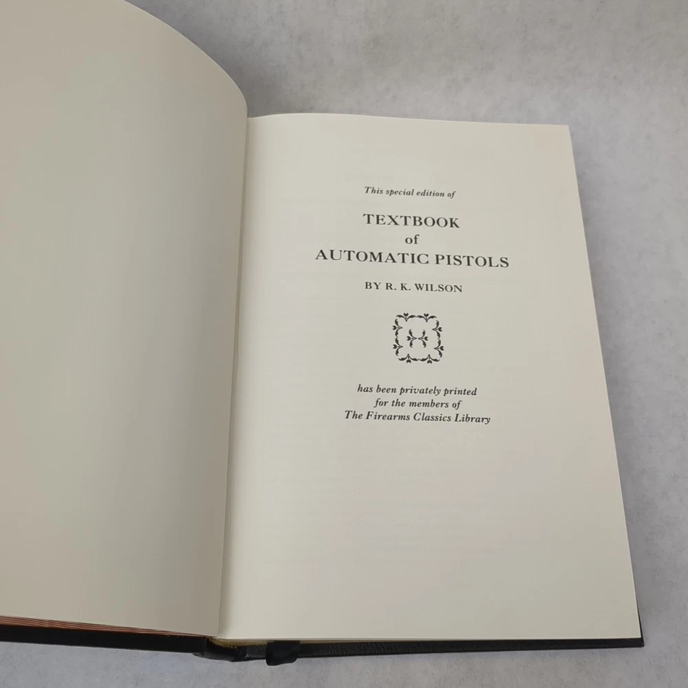 This is a rare and valuable edition of "Textbook of Automation Pistols" by R.K. Wilson. The book is a special edition Leather Bond Edition printed in 1999 by The Firearms Classics Library. It covers various aspects of automation pistols and is written in English. The book is a must-have for collectors and enthusiasts of antique firearms. The binding is made of high-quality leather. The book is in excellent condition. Please see the images of the actual item for sale.