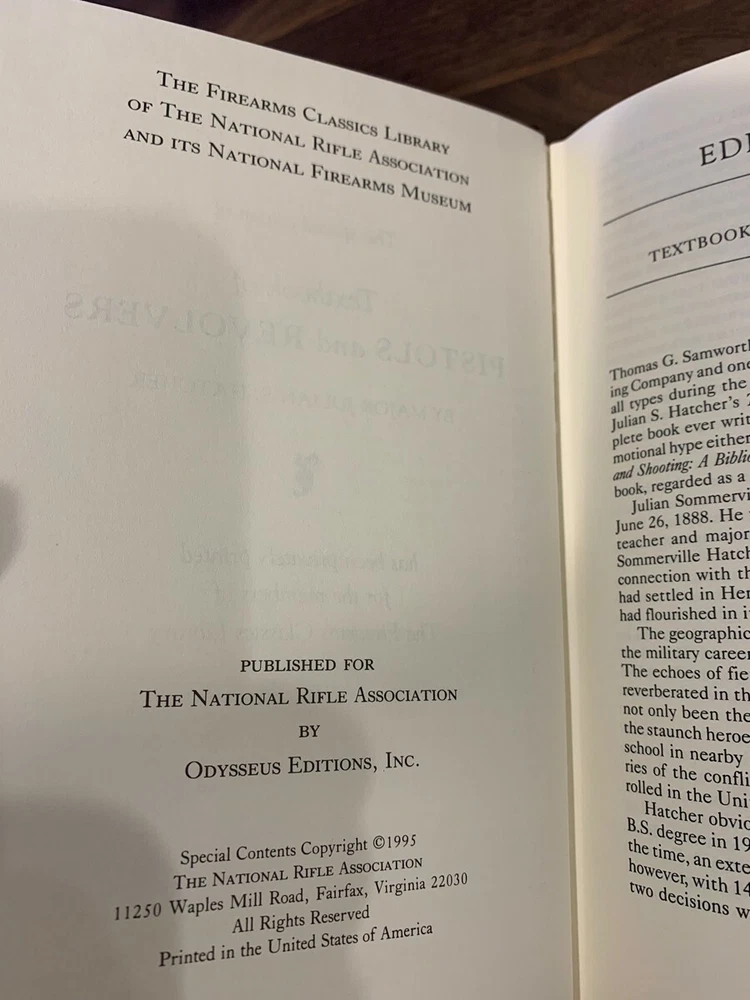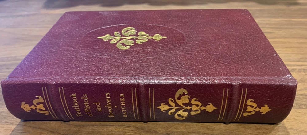 Textbook of Pistols and Revolvers by Hatcher 1995 NRA Firearms Classics Library. Special Edition - leather with gold gilded pages. Hubbed spines and sewn-in page marker. See pics for details.