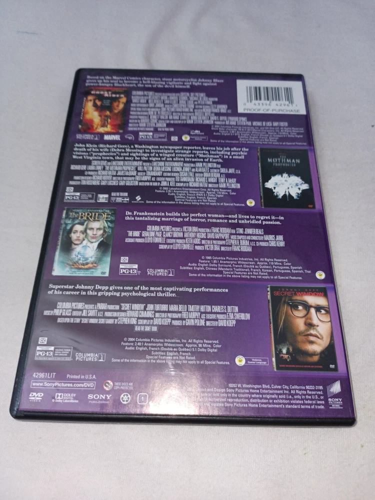 | Movie/TV Title | secret window, Godzilla, covenant, Ghost Rider |