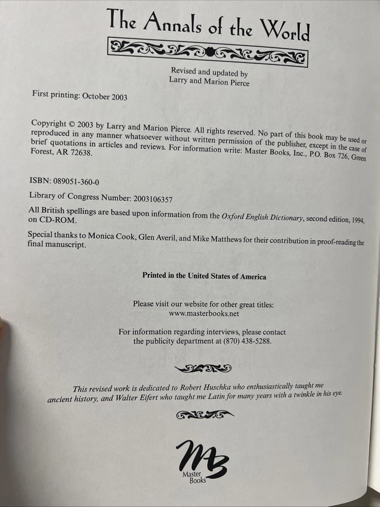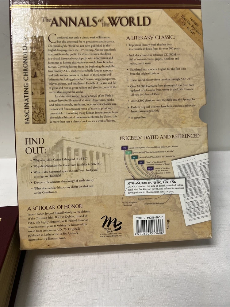 Discover the fascinating history of the world with "The Annals of the World" by James Ussher. This hardcover, leather bound textbook, published by New Leaf Publishing Group in 2007, is a perfect fit for those interested in religion and history. The book covers a wide range of topics including ancient and general history, reference, and biblical reference. With a length of 10.8 inches, a height of 2 inches, and a width of 8.2 inches, this book weighs 73.8 ounces and has 960 pages. Get your hands on this valuable resource today! This book is pre-owned but is in Very Good condition. See photos. There is some minor damage to one corner. This book includes a cardboard sleeve for protection, also in Very Good condition. See photos. All Items sold on this website were donated to Adullam International Ministries/Adullam House Thrift Store. Adullam House is a ministry that provides a home and education for our at-risk children, we are a true safe haven from the horrors of neglect and abuse. For some children it’s a short-term rescue, for others it will be a brand new permanent home. 100% of all sales goes to Adullam International Ministries. Your purchase today helps support our kids. Thank you and God bless you! "It's better to build children than repair grown-ups.”