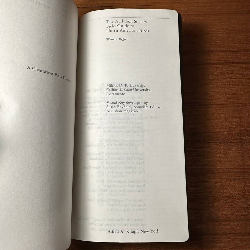 The Audubon Society Field Guide to North American Birds Western Region 1987. In very good preowned condition. Purchased from recent estate liquidation. Please view all photos for further details and descriptions. Many other vintage and antique books listed regularly. Thank you for stopping by and taking a look.