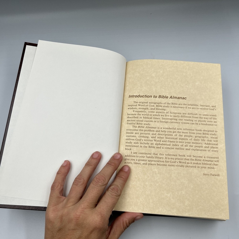 This vintage hardcover book, titled "The Bible Almanac Old-Time Gospel Hour Edition 1980 Falwell", is a valuable addition to any collection. With its faux leather binding and insightful content, it is a great resource for young adults, ages 9-12, and adults alike. Written by J. I. Packer, this first edition book is part of the Insight Guides series and covers various topics including spirituality, religious and spiritual history. It is a perfect choice for those interested in the subject of religion and spirituality.