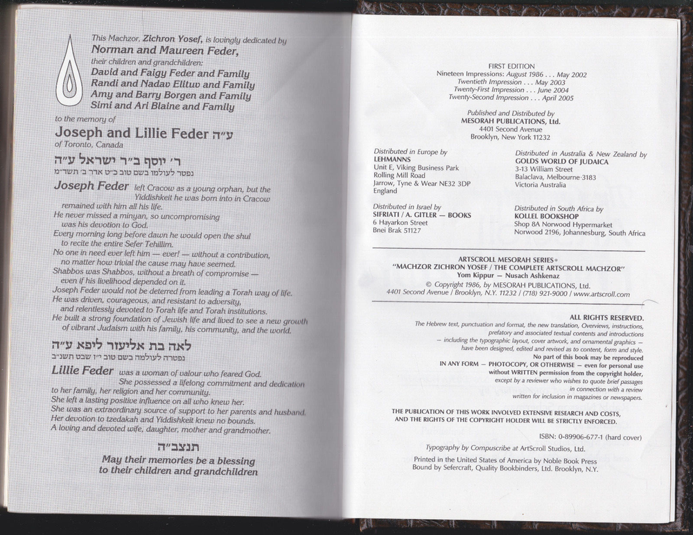 Leather Bound 2005. Pages clean and unmarked. The lightest edge wear. Gold lining on outer pages has light wear. Inner cover papers have the lightest wrinkle. The first 13 pages are bonded a hint lower than the rest of the pages. Spine is solid. Images on listing, are of this book. ______________ A Prayer book for our times, it speaks to today's Jew, relating the thoughts and words of our heritage to the mind and heart of modern, sophisticated Jews. Includes: The complete Hebrew text completely reset in crisp, modern type Scriptural sources Clear, concise instructions Hebrew subheads New, highly readable English translation of the entire prayer services A clear, inspirational commentary on every prayer, and an introductory overview providing perspective and insight Attractive, clear page layouts Lightweight, easy-to-handle opaque paper Special sections explaining in detail the laws of the prayer service and all special customs and observances Prayer services that are easy for everyone to follow