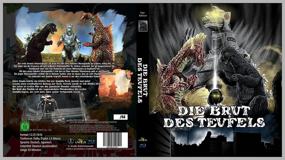 Hello! Please note the following: If this is a DVD or Blu-Ray offer: These are European discs from a German dealer. You may need a player with Regional Code 2, Regional Code Free (DVD) or Regional Code B (Blu-Ray) !!! If the discs are not playing, it is up to your player. A return of already open boxes is not possible !!! Thank you The Breeding of Devil Limited 66 Anolis Godzilla Blu-Ray Terror Mechagodzilla The description of this item has been automatically translated. If you have any questions, please feel free to contact us. Director: Honda, Ishiro Actor: Sasaki, Katsuhiko Hirata, Akihiko Ai, Tomoko Uchida, Katsumasa Nakamaru, Tadao Mutsumi, Goro Kawai, Toru THE BREED OF THE DEVIL Limited 66 Anolis Godzilla Fan Edition TERROR OF MECHAGODZILLA BLU-RAY 1975 83 mins Language: German / Japanese Subtitle / subtitle: German FSK 12 The first attempt by aliens to conquer Earth with the help of their robot Mechagodzilla failed. Now the invaders have teamed up with the brilliant scientist Dr. Mafune, who, as an outcast from society, also has a score to settle with his fellow human beings. The new robot Mechagodzilla 2 and the sea-dwelling Titanosaurus go on the attack. A young scientist falls in love with Mafune's daughter, without knowing that she is more machine than human and carries the Mechagodzilla control unit in her body. If Mechagodzilla is to be defeated, she must die. When Godzilla finally intervenes, the all-decisive battle ensues. Ishiro Honda returned to the Godzilla series one final time and once again created a more serious entry into the series. He was united with Akihiko Hirata, who had already appeared in the first film about the Japanese giant lizard. THE BREED OF THE DEVIL is the unusual film conclusion to the first Godzilla series, which was only continued ten years later. BRAND NEW The first attempt by aliens to conquer Earth with the help of their robot Mechagodzilla failed. Now the invaders have teamed up with the brilliant scientist Dr. Mafune, who, as an outcast from society, also has a score to settle with his fellow human beings. The new robot Mechagodzilla 2 and the sea-dwelling Titanosaurus go on the attack. A young scientist falls in love with Mafune's daughter, without knowing that she is more machine than human and carries the Mechagodzilla control unit in her body. If Mechagodzilla is to be defeated, she must die. When Godzilla finally intervenes, the all-decisive battle ensues. Ishiro Honda returned to the Godzilla series one final time and once again created a more serious entry into the series. He was united with Akihiko Hirata, who had already appeare Regisseur Honda, Ishirô FSK-Einstufung 12 Format Blu-ray Film-/Fernseh-Titel DIE BRUT DES TEUFELS Limited 66 Anolis Godzilla BLU-RAY Terror of Regionalcode Blu-ray: B (Europa, AU, NZ, Afrika ...) Sprache Deutsch Sprache Japanisch Untertitel Sprache Deutsch Edition Limitierte Auflage EAN 4041036351397 Darsteller Sasaki, Katsuhiko Hirata, Akihiko Ai, Tomoko Uchida, Katsumasa Genre Horror Genre Sci-Fi & Fantasy Herstellungsland und -region Deutschland