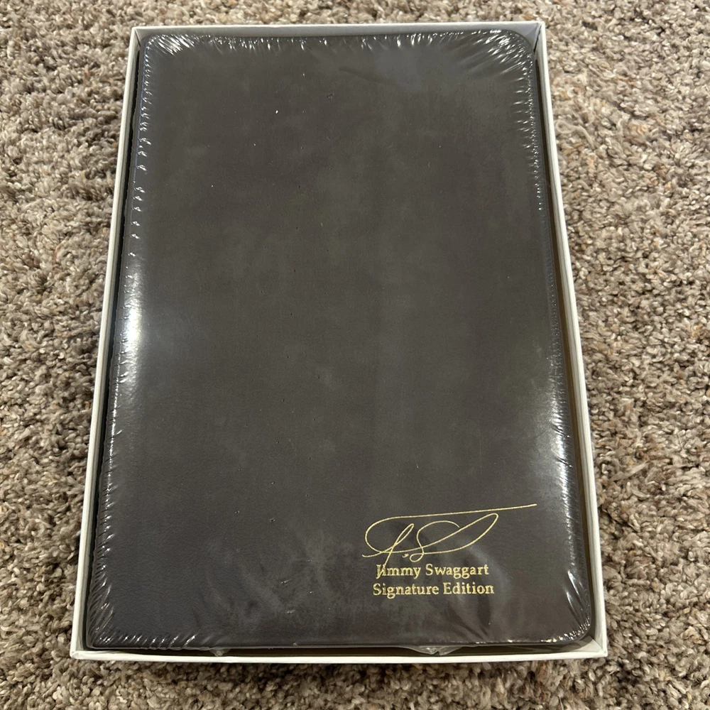 This Expositor’s Study Bible is absolutely stunning—the craftsmanship is top-notch, and the leather feels luxurious. Even though the color appears darker than expected, it still looks elegant. The fact that it’s brand new, still sealed in plastic, and signed by Jimmy Swaggart makes it a rare treasure. Shipping was incredibly fast, arriving in perfect condition. A must-have for collectors and believers alike!