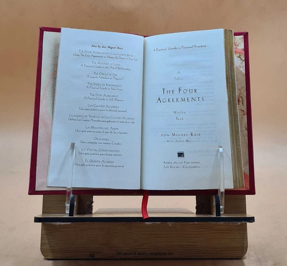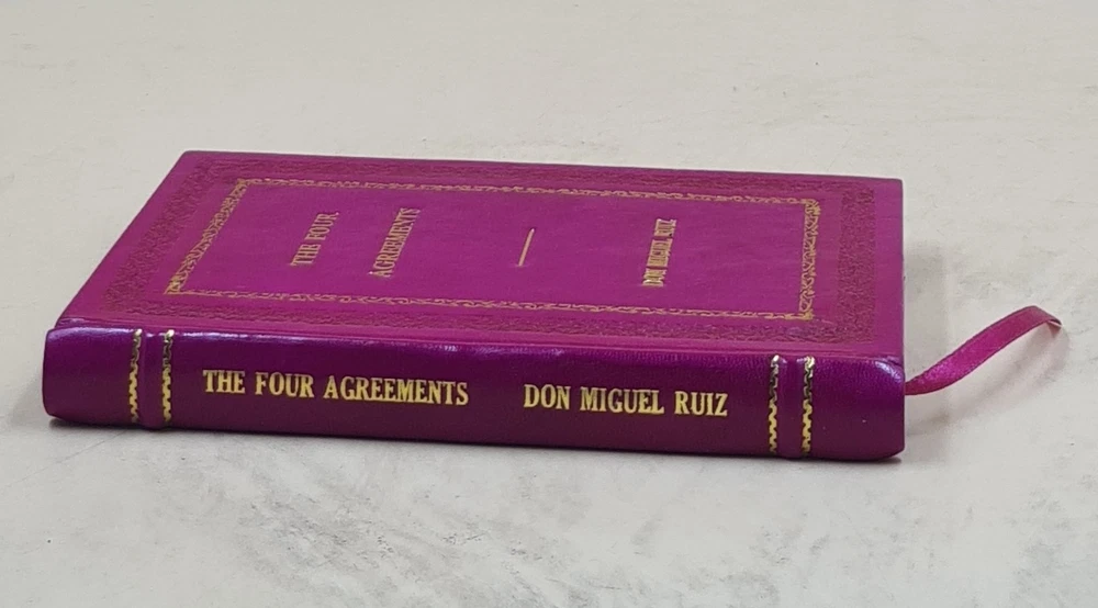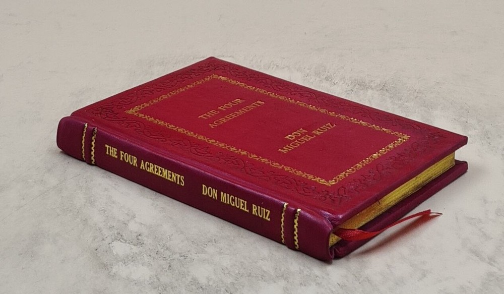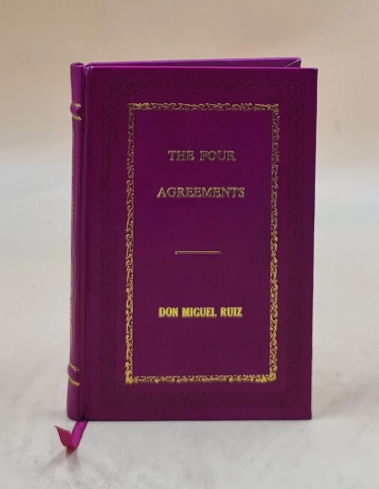 GYAN BOOKS INTRODUCING A REMARKABLE LEATHER-BOUND EDITION, METICULOUSLY CRAFTED BY THE ESTEEMED INSTITUTION " RARE BIBLIO". This title holds the distinction of being a Bestseller, highly praised by readers across the GLOBE. We are thrilled to present this literary gem exclusively to our elite readers, meticulously encased in our one-of-a-kind Premium Leather Binding . Following your order, we purchase the book from the original publisher/distributor and embark on the process of rebinding to elevate this book to a Luxurious Reading Style. A UNIQUE LEATHER-BOUND BOOK FOR ELITE READERS/COLLECTORS OF OLD RARE AND BESTSELLING BOOKS. For the Binding, we use GENUINE LEATHER , graced with opulent GOLDEN LEAF DETAILING on the SPINE , FRONT COVER , AND BACK COVER , ADDED BY EDGE GILDING . ABOUT US ★ We deal into reprinting of the master pieces crafted by authors around the world. ★ We are proud to say that we have a collection of over 25 million books and our collection includes books that are as old as 200 years and hence are considered as RARE BOOKS. ★ We are pioneer in this field having experience of 40 years. ★ We also undertake printing and Leather Binding jobs of other books. ★ Thesis printing and Leather Binding is one of our important Service ★ Many publishers and author approach us for their books to bind in our Unique leather binding format for their special customers. ★ Our craftsmen are active in this job since generations. ★ Restoration of old books is our expertise ★ We are known by our Customization options. ★ We have many leather color options in our bucket. ★ The whole process is done manually so that it gives you the same feeling of old book. OFFERS & SPECIALIZATION: ★ SPECIAL DISCOUNT FOR BULK ORDERS, PLEASE CONTACT US. ★ CHOOSE ANY LEATHER COLOR OF YOUR CHOICE WITHOUT ANY EXTRA CHARGES, JUST CLICK ON IMAGES FOR OPTIONAL COLORS AND INFORM US YOUR CHOICE THROUGH MAIL WITH COLOR CODE. ★ WE OFFER A DIVERSE RANGE OF LEATHER COLORS, INCLUDING RED , GREEN , BLUE , BLACK, MAGENTA , YELLOW , TAN . WE ALSO OFFER MULTI-COLOR LABELS WITH THESE BEAUTIFUL BOOKS ON SPECIAL REQUEST. ★ AN ORIGINAL LEATHER IS BEING USED FOR BINDING THIS BOOK WITH GOLDEN LEAF PRINTING AND DESIGNING ON SPINE, FRONT AND BACK OF THE BOOK WITH EDGE GILDING . Points to note before booking order: ★ In case of multi volume sets, please note that the above listing is for a single volume only. (To order multiple volumes, please contact us separately). ★ We urge you to appreciate that our Leather-Bound Books are Genuine works of art and are Handcrafted by our Professional Craftsmen. Thus, requiring time and care to reach the pinnacle of excellence. ★ We Prepare the Book after receiving the Order. ★ We usually take 30 business days as handling time to dispatch shipment. ★ We request you to understand that these leather-bound books are work of art and hence require time to go through different process to be the master pieces that they are. ★ We usually take 30 business days as handling time to dispatch shipment. We consider special request for a special occasion. ★ Craftsman based in India, prepared this book and shipped from different stock locations around the Globe. Product Details: - ★ Complete Title: The Four Agreements: A Practical Guide to Personal Freedom by Ruiz, Don Miguel & Mills, Janet [PREMIUM LEATHER BOUND] ★ Author: Ruiz, Don Miguel & Mills, Janet ★ Language: English ★ No. Of Pages: 160 ★ Year: 1997 ★ We provide ?Extra customization*? on request with additional charges. ★ We also undertake printing and Leather Binding of all the books. ★ Product Disclaimer: Please be aware that because leather is a natural material, slight discoloration or change in texture may be visible. About the Book: - In The Four Agreements, bestselling author don Miguel Ruiz reveals the source of self-limiting beliefs that rob us of joy and create needless suffering. Based on ancient Toltec wisdom, The Four Agreements offer a powerful code of conduct that can rapidly transform our lives to a new experience of freedom, true happiness, and love. - A New York Times bestseller for over a decade - An international bestseller published in 52 languages worldwide "This book by don Miguel Ruiz, simple yet so powerful, has made a tremendous difference in how I think and act in every encounter." -- Oprah Winfrey "Don Miguel Ruiz's book is a roadmap to enlightenment and freedom." -- Deepak Chopra, Author, The Seven Spiritual Laws of Success "An inspiring book with many great lessons." -- Wayne Dyer, Author, Real Magic "In the tradition of Castaneda, Ruiz distills essential Toltec wisdom, expressing with clarity and impeccability what it means for men and women to live as peaceful warriors in the modern world." -- Dan Millman, Author, Way of the Peaceful Warrior