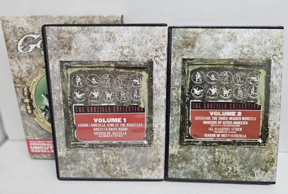 The Godzilla Collection DVD 2 Volume Set Including Original Uncut Godzilla 2011 This is a 8 disc set! The discs are in very good condition! The box shows some wear and the volume 2 case has a clip broke that holds the dvd. We ship via USPS with Delivery Confirmation. This item will be shipped within 2 business days once we receive cleared payment. We do not accept returns unless the item was grossly misrepresented. Thank you!!