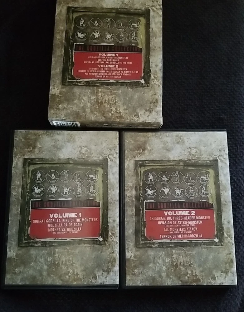 The Godzilla Collection on DVD, 2011. Includes the original uncut Godzilla. Minor tear on the spine cover. See photo.