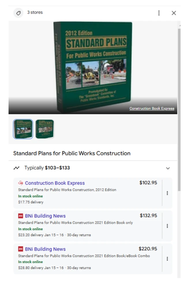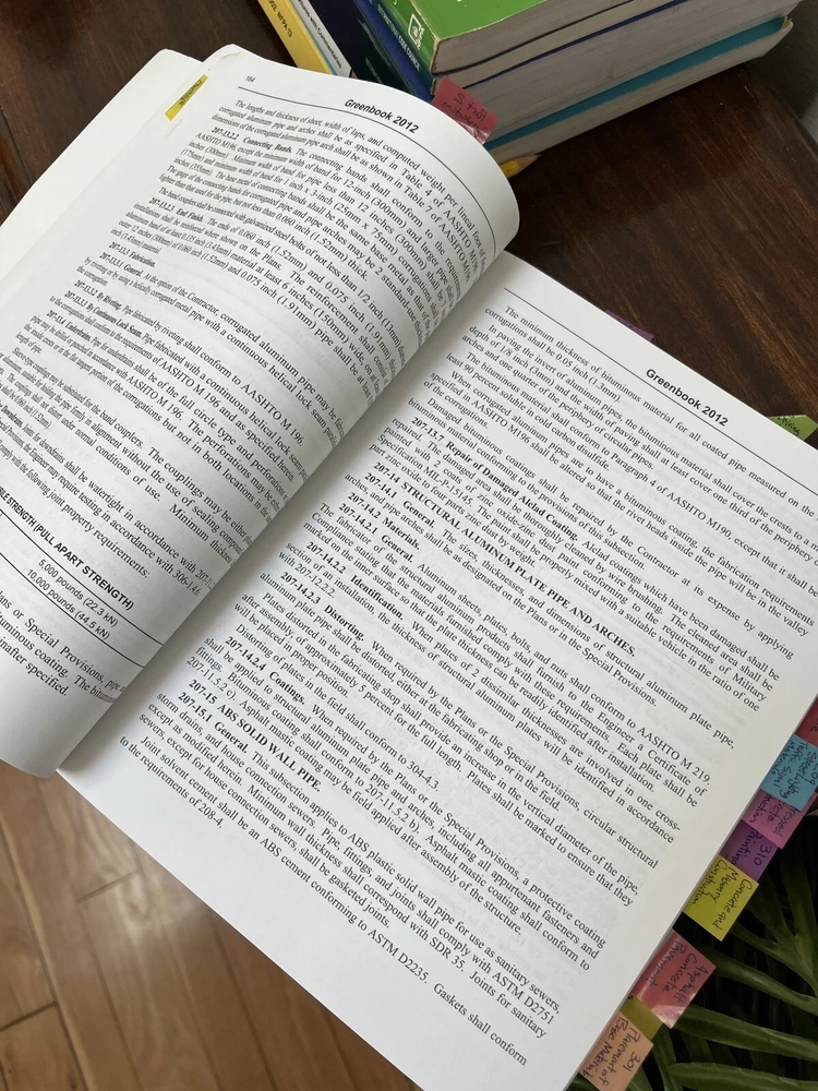 The "Greenbook" 2012 Edition: Standard Specifications for Public Works Construction Published by Public Works Standards, Inc. The 2012 Edition of The "Greenbook" is a definitive guide for public works construction projects, providing standardized specifications widely used by municipalities, counties, and construction professionals. This trusted reference ensures uniformity, clarity, and compliance across a range of public works projects. Published by Public Works Standards, Inc. , this comprehensive manual is an essential resource for engineers, contractors, and public works officials. Key Features: Title: The "Greenbook" 2012 Edition: Standard Specifications for Public Works Construction Publisher: Public Works Standards, Inc. Copyright: 2012 Pages: Approx. 600 Dimensions: Approx. 11 x 8.5 inches Condition: Cover: Moderate wear with minor scuffs and edge wear from use. Spine: Strong and intact, with no major damage. Pages: Clean and legible, free from writing. Some highlighting. Removable 3M tabs. Binding: Secure with no loose or missing pages. Weight: Approx. 3 pounds Why Buy This Book? Widely recognized standard for public works construction projects. Used by municipalities and counties for consistent specifications and guidelines. Comprehensive coverage of construction standards, materials, and processes. Trusted by engineers, contractors, and public works officials nationwide. Shipping: This book will be securely packaged and shipped promptly to ensure it arrives in excellent condition.