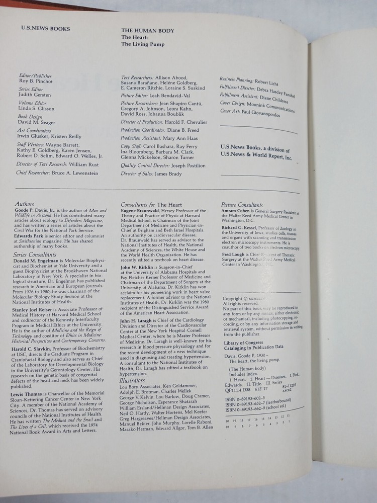 Explore the fascinating world of the human body with "The Heart: The Living Pump" textbook. This 159-page hardcover book, written by Goode P. Davis and Edwards Park, is a must-have for anyone interested in the human anatomy. The book focuses on the heart, which is the living pump of the human body. The leather-bound book was published by U.S. News & World Report Incorporated in 1981 and belongs to "The Human Body Ser." series. It is written in English and is perfect for students, educators, and medical professionals alike. Add this informative textbook to your collection today!
