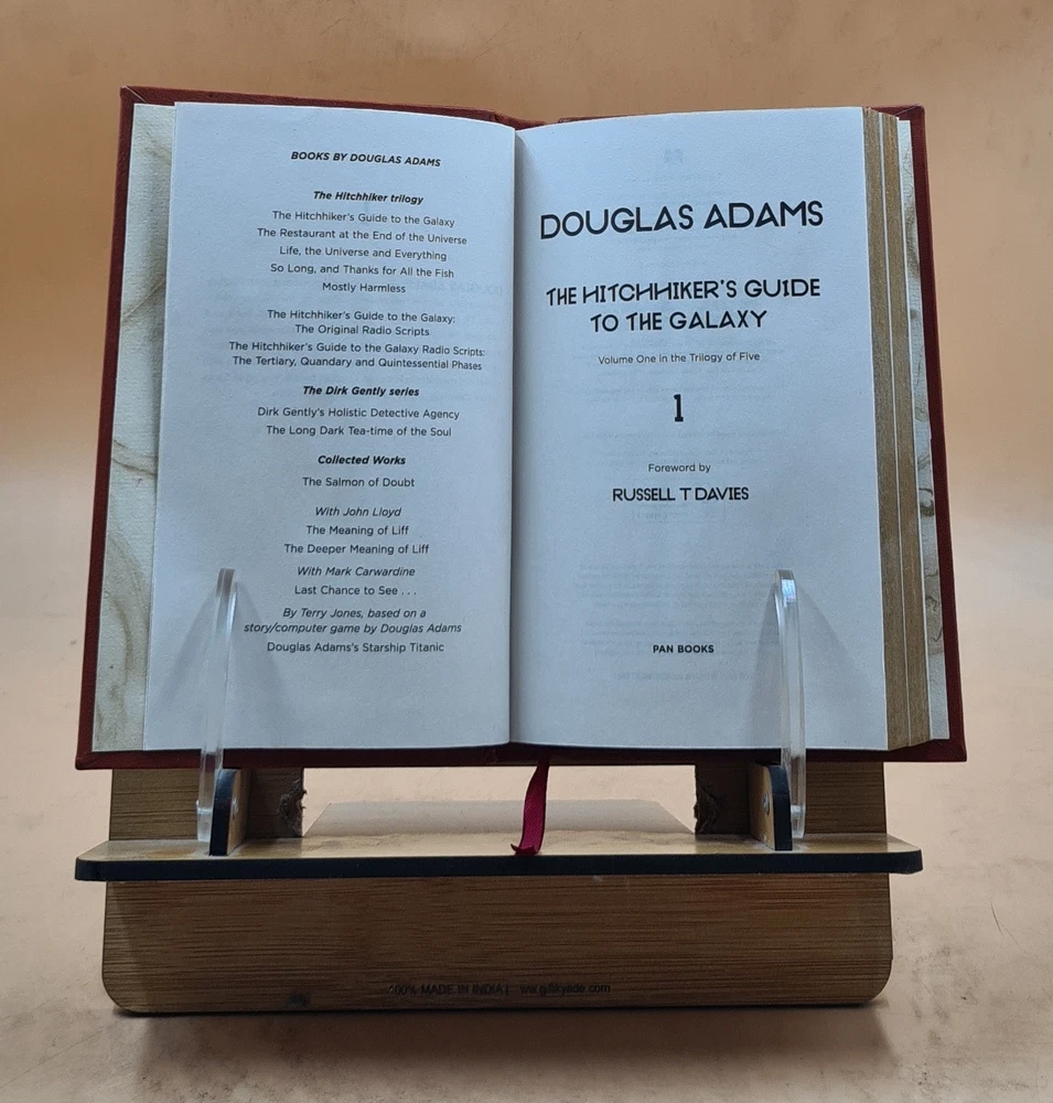 It is a Bestselling Title, recommended by many readers around the Globe. We are bringing this book for our Elite readers in our Unique Premium Leather Bound. We will rebind this book after purchasing from the original Publisher/Distributor. Go on a galactic adventure with the last human on Earth, his alien best friend, and a depressed android. Introducing younger readers to The Hitchhiker's Guide to the Galaxy, this YA edition of the funny sci-fi classic includes an introduction from Artemis Fowl author Eoin Colfer. One Thursday lunchtime the Earth gets unexpectedly demolished to make way for a new hyperspace bypass. It's the final straw for Arthur Dent, who has already had his house bulldozed that morning. But for Arthur, that is only the beginning . . . In the seconds before global obliteration, Arthur is plucked from the planet by his friend Ford Prefect and together the pair venture out across the galaxy on the craziest, strangest road trip of all time! Totally hilarious, The Hitchhiker's Guide to the Galaxy has been a radio show, TV show, stage play, comic book and film, and is and a work of utter comic genius from Douglas Adams. Seller Inventory # SD9781529034523 CHOOSE ANY LEATHER COLOR OF YOUR CHOICE WITHOUT ANY EXTRA CHARGES, JUST OPEN "View Larger Image" BUTTON JUST BELOW THE BOOK IMAGE AND MAIL US YOUR CHOICE.