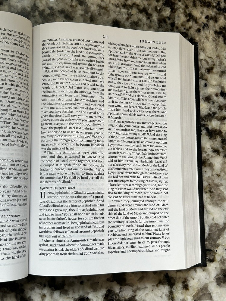 Looks just as described great price packing was great it was wrapped in plastic and mailed in a plastic mailer it was raining when delivered when I got home I was afraid that the Bible would be ruined but it’s was still dry thankfull that it was wrapped in plastic .