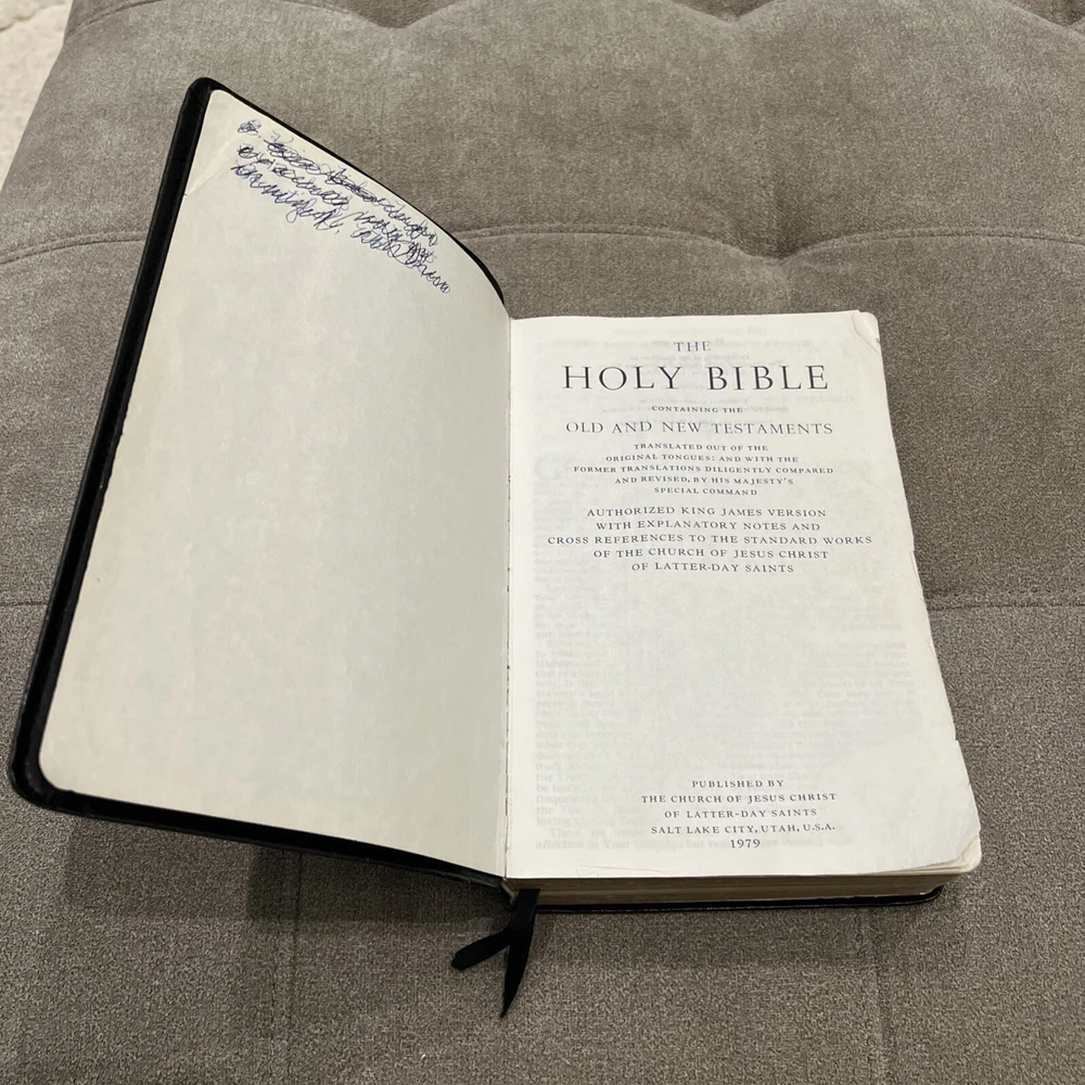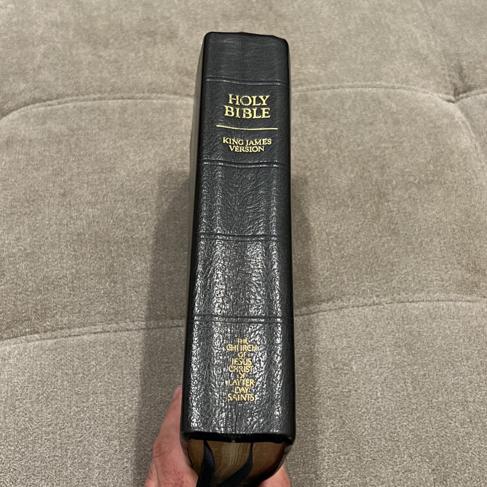 The product is a large print black leather-bound edition of The Bible, specifically the LDS Edition published by The Church of Jesus Christ of Latter-day Saints in 1979. This edition includes the Joseph Smith Translation, maps, a Bible dictionary, and a topical guide. It is intended for young adults, ages 9-12, and adults, with a focus on spirituality, religious beliefs, and Christian teachings. The book covers topics such as theology, Christmas, afterlife, and comparative religion, making it a valuable resource for those interested in exploring religious history and the teachings of Christianity.