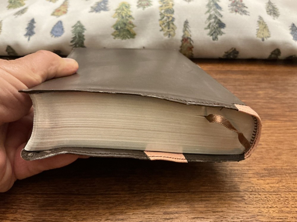 For 1992 I am calling this VERY GOOD CONDITION. Brown leather cover has normal wear along the edges. Rest of the book including Binding is in great shape. PLEASE SEE PICTURES FOR ACTUAL CONDITION. Breast Cancer Awareness Cover. With Large Print. No Writing Or Marks. SORRY BUT ABSOLUTELY NO RETURNS. SHIP TO LOWER 48 ONLY.