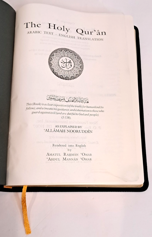 Delve into the spiritual wisdom of the Holy Quran with this elegant leatherbound edition that presents the Arabic text alongside an English translation by the renowned Allamah Nooruddin. Published by the Noor Foundation-International in 2003, this volume is a valuable resource for both scholars and seekers of religious knowledge. The book is a part of the Historical series and offers a comprehensive look into Islam's sacred writings. It is a must-have for anyone interested in the genre of Religion, with its focus on Islam and the Koran. The book's detailed indices and comprehensive topic coverage make it a profound addition to any personal library or collection.