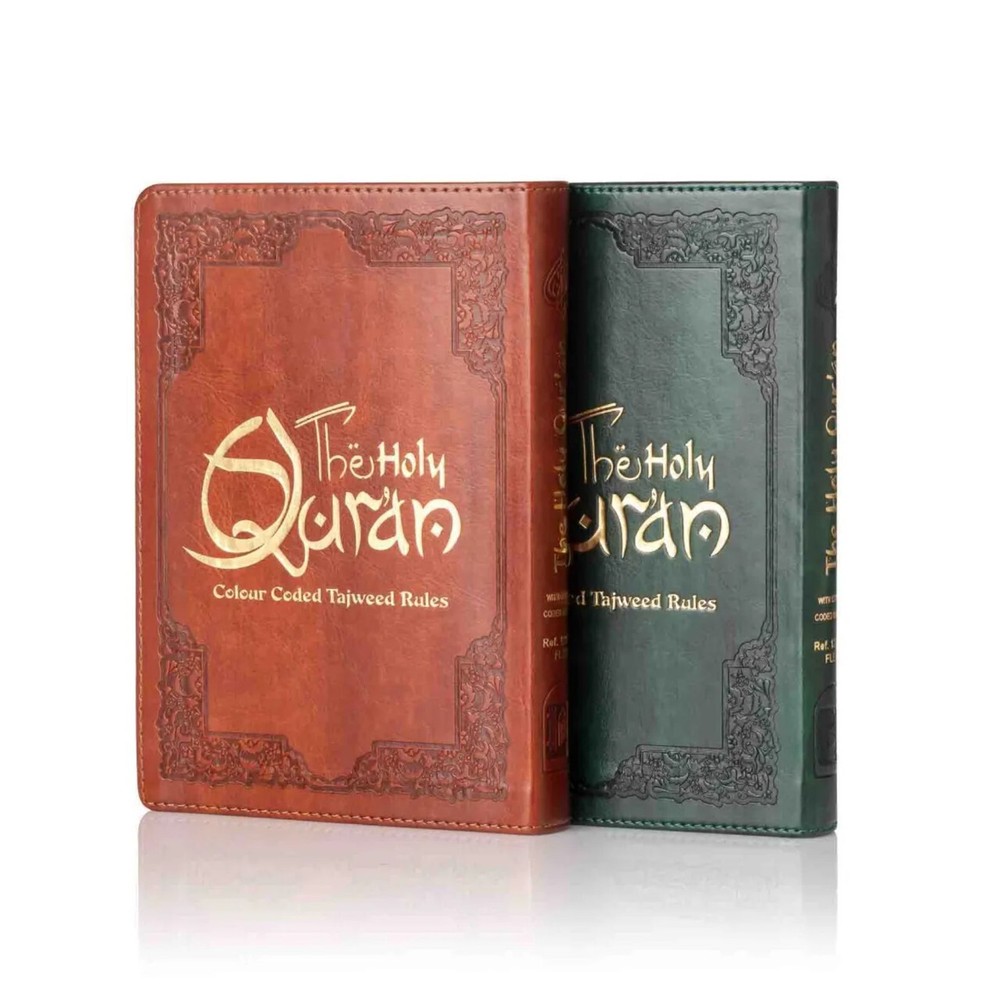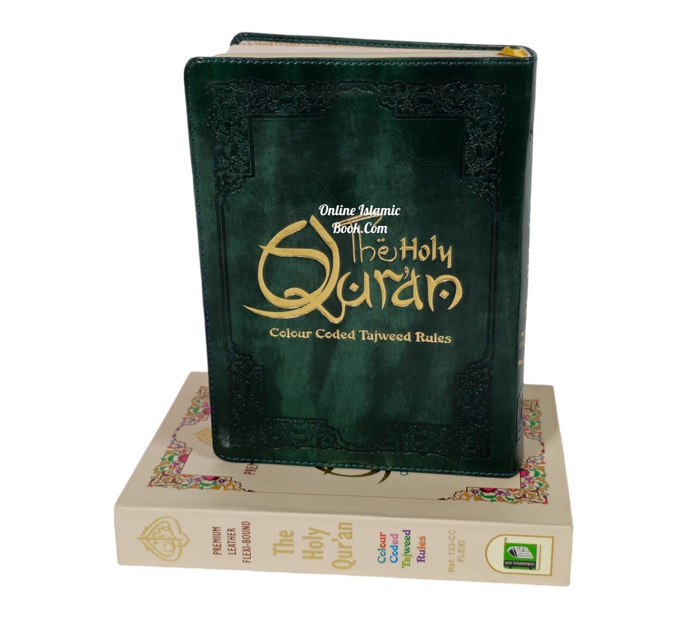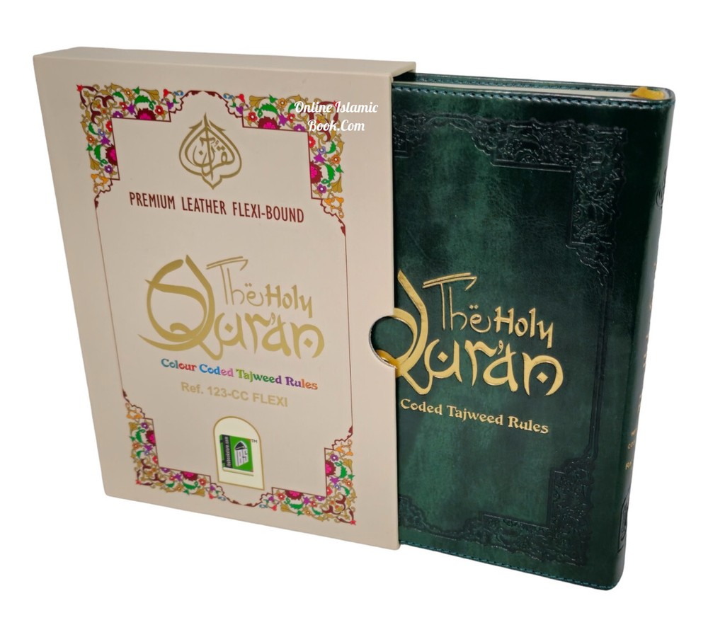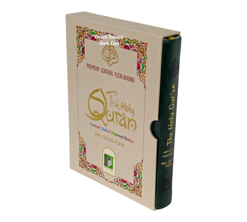 The Holy Quran Colour Coded Tajweed Rules Premium Leather Flexi-Bound Ref 123-CC Flexi Cover, Arabic language,(15 Lines) Tajweed Rules Expalined in English and Urdu Language Holy Quran No.123-CC Flexi with Slip Case ISBN:9789351691112Author: Allah Binding: Flexible Cover With Hard Case Pages: 618 Size: 7.7 x 5.6 x 1.1 inch Publication Year: 2021 Description About This Book: The Holy Quran Colour Coded Tajweed Rules with Colour Coded Manzils is a specific edition of the Quran with two unique features: Tajweed rules and Manzils, both color-coded for simple reference and application. Rules for Tajweed: Tajweed refers to principles for flawless Quran recital. It includes exact requirements for letter pronunciation, intonation, and articulation, as well as directions for pause length, repetition percentage, and other elements of recitation. The Colour Coded Tajweed edition of the Quran brings attention to these rules by giving various Tajweed components a particular colour. This graphic assistance helps readers recognise and follow the proper Tajweed guidelines when reciting the Quran. Premium Leather Flexi-Bound: This edition has an excellent leather binding that is both flexible and strong. The Quran remains secure and shielded by the Flexi-Bound cover, that makes it simple to hold and open during recitation or study.