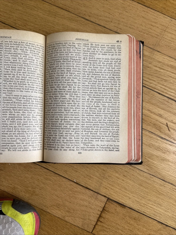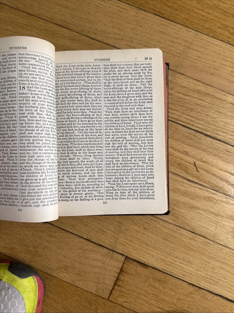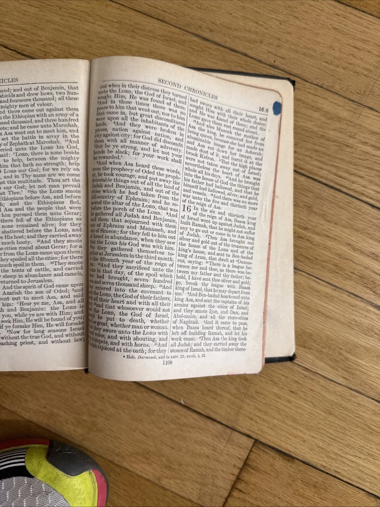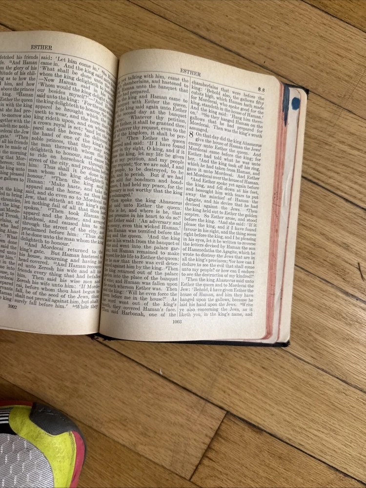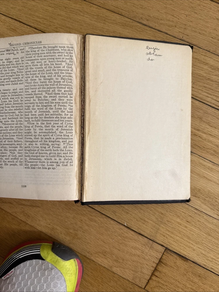 Bible spine is a little bit loose and as you can see, there’s a small tear in one of the pages. The cover is also a little bit worn away. But it’s almost 100 years old so it’s pretty amazing....