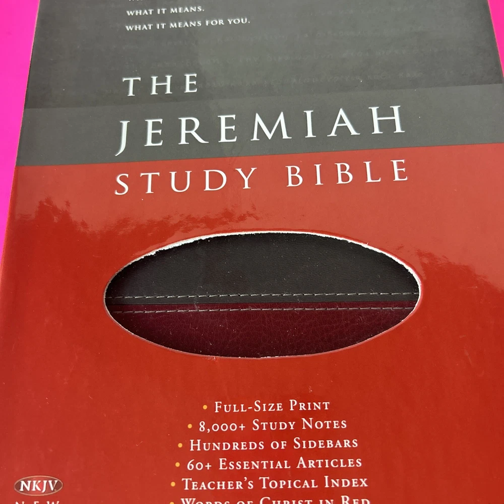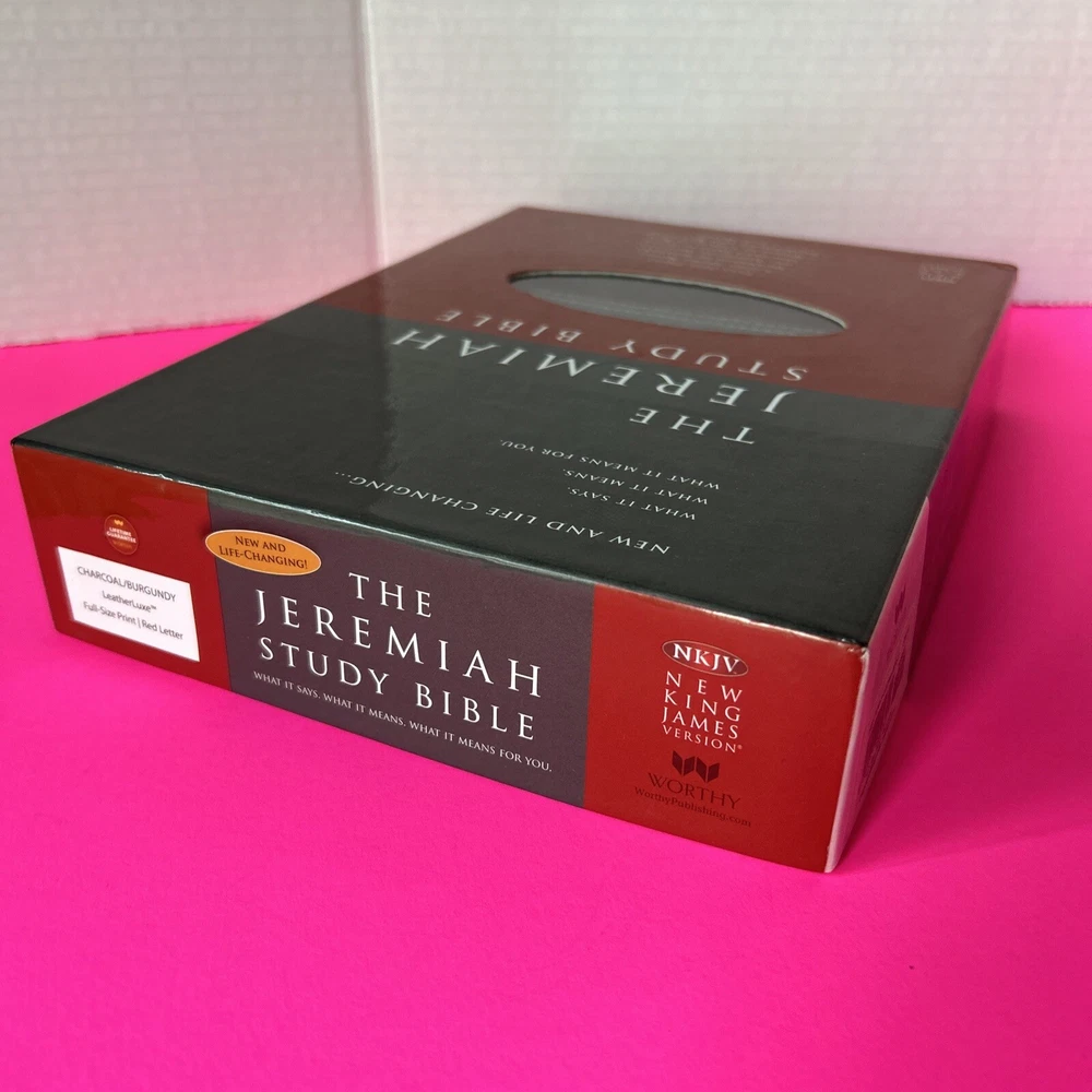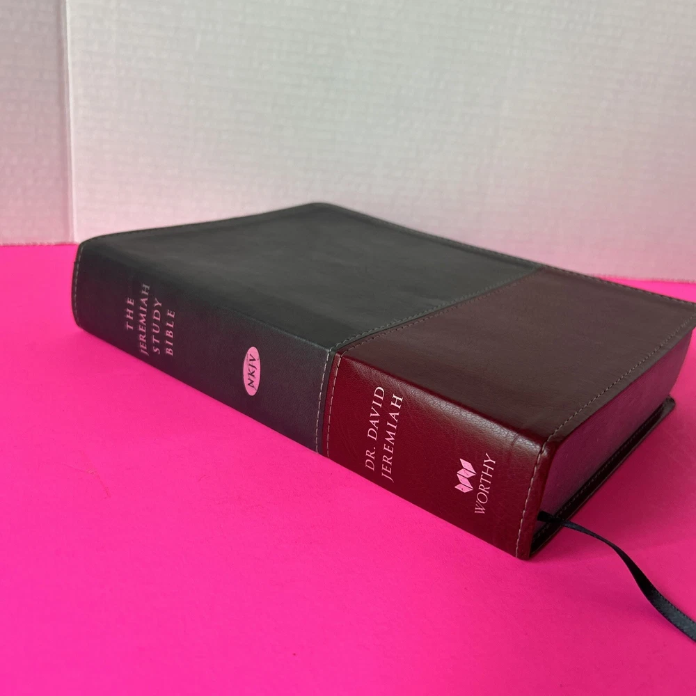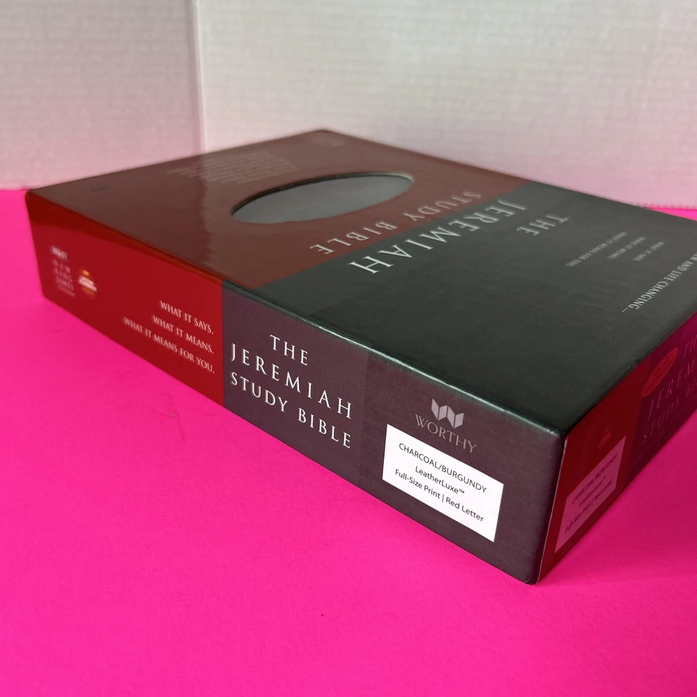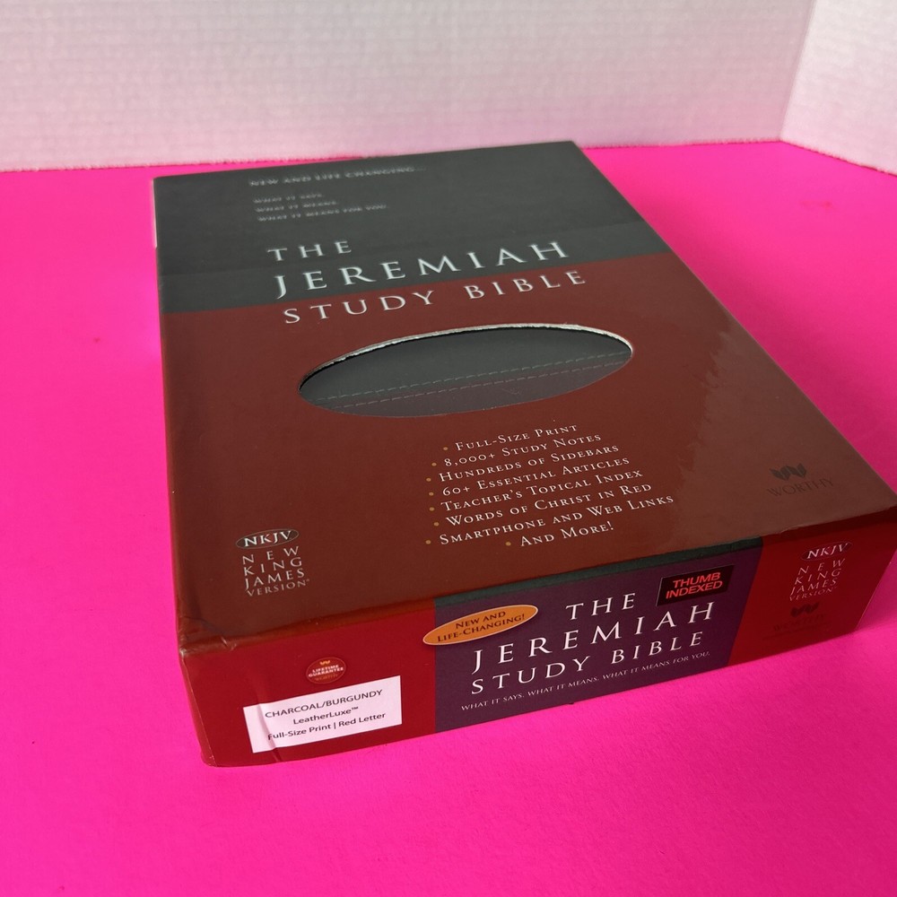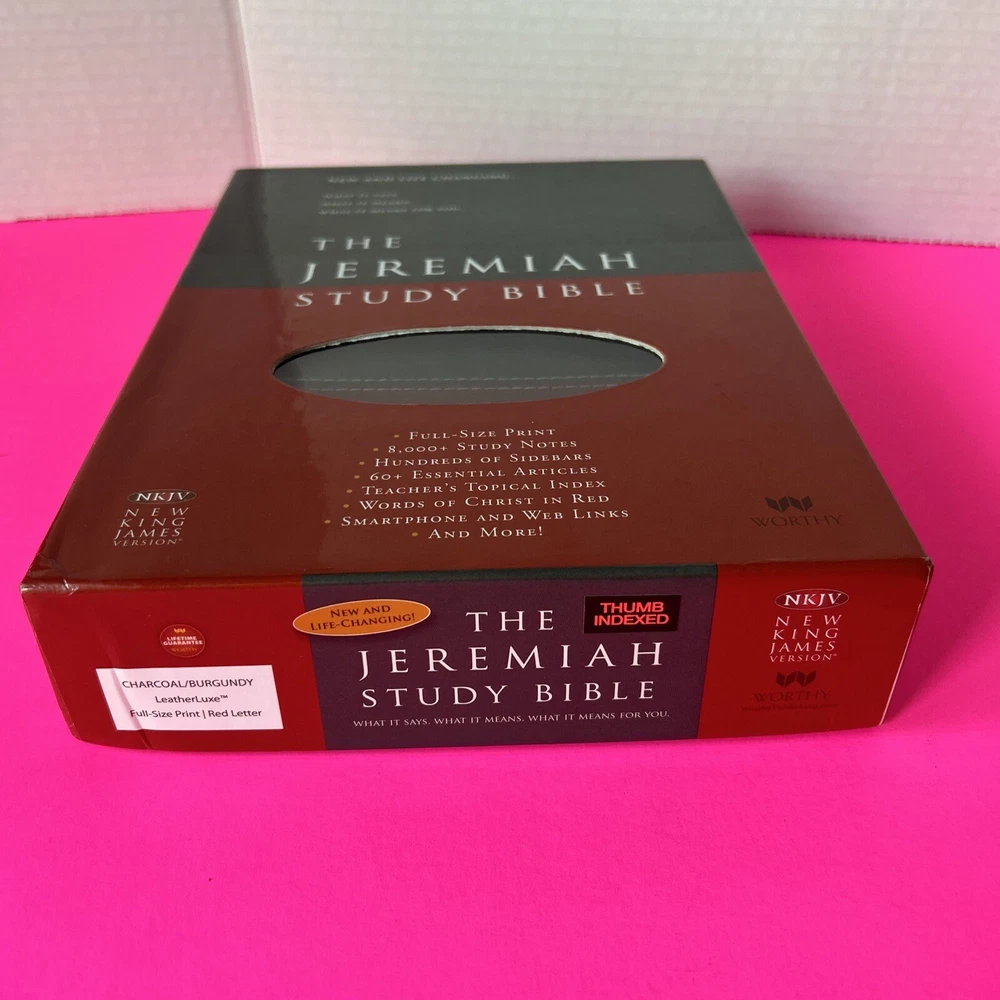 The Jeremiah Study Bible, NKJV: Charcoal/Burgundy LeatherLuxe® w/thumb index: What It Says. What It Means. What It Means For You. Leather Bound This leather bound Study Bible is in Like New condition. No missing pages, no folded pages. Nothing written in the book, no highlighted marks. There is wear to the box. Please check pictures. Please check ALL photos for condition of the book. Stored in a smoke-free pet free home GTD. Expert, professional, safe handling & shipment of your item. You will receive the book shown in the pictures. We will NOT mail your book in a bag GTD. OUR GOAL = GETTING YOU THE EXACT BOOK PICTURED. 1st step: place book inside waterproof mailer 2nd step: Triple bubble wrap focusing on corners to prevent damage during shipping 3rd step: Place book w/bubble wrap inside 2nd waterproof mailer, this will method will not allow the book to get wet unless submerged in water 4th step: Book w/protective measures is then taped onto a SOLID piece of cardboard, this prevents any movement of the book during transit 5th step: Sandwiched between 2 pieces of cardboard taped again, this ensures the edges of the book are protected yet again 6th step: Sandwiched book is placed inside another box with packing material (if necessary). Even if the outside box is damaged the inside protection 99.9% of the time will protect the book from damage. WE HAVE NEVER HAD A RETURN FOR DAMAGE TO A BOOK!! Your customer experience is our #1 priority. We try our best to ensure you receive the exact book shown in the pictures. Your book or item will never be thrown in a poly bag and shipped with no protection guaranteed. Expert, professional, safe handling & shipment of your item included with every purchase. We take pride in our customer service. Your book will be bagged in a way that no other seller on eBay will. Your satisfaction is our number one priority. We WILL spare no expense getting your book described in this listing to your door the safest say possible!! That's our "GoodBook" Promise!! Same day handling time if paid before 5pm EST. Ships out next morning. Drawn from more than 40 years of study, Dr. David Jeremiah, one of America's leading Bible teachers, has produced a deeply personal and comprehensive study Bible packed with features specifically focused to help you discover what Scripture says, what Scripture means and, most importantly, what Scripture means for you. The Jeremiah Study Bible presents the best of biblical insight and study tools along with clear, practical application to bring about authentic transformation in your life.