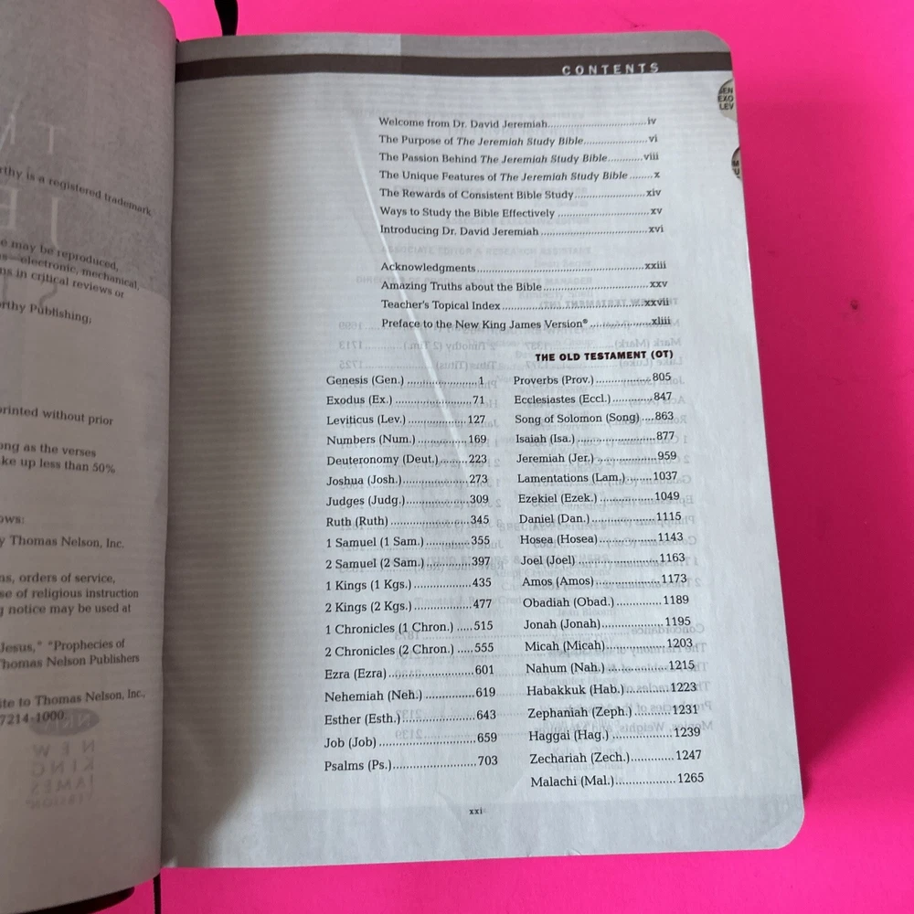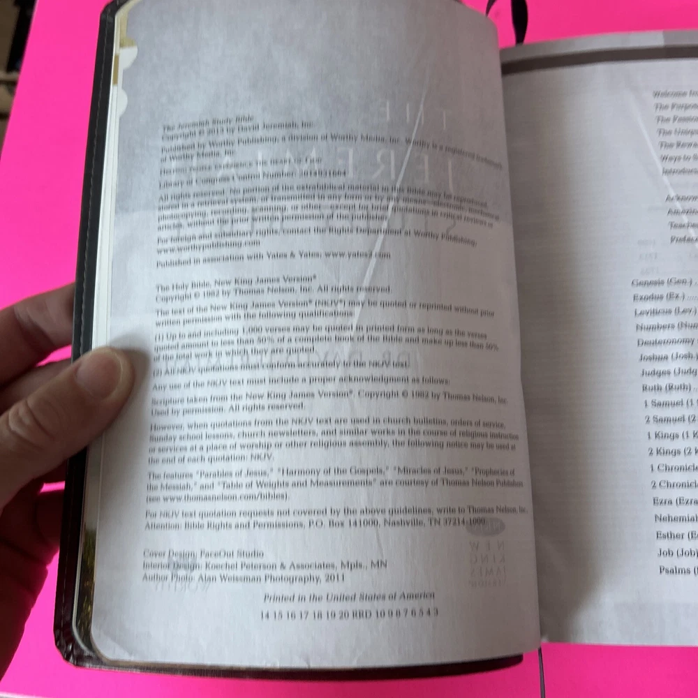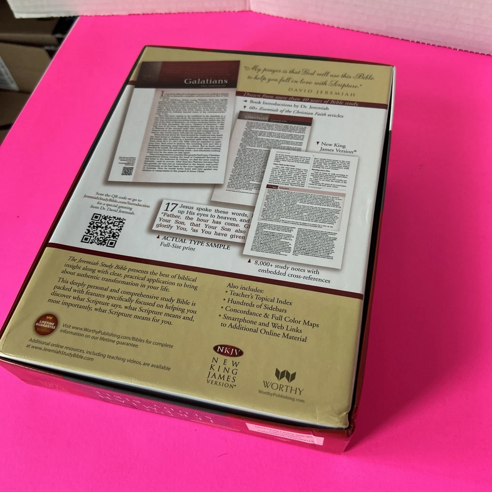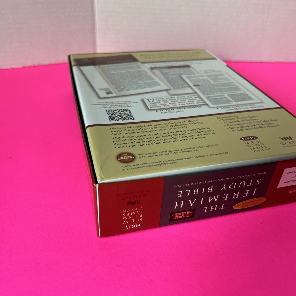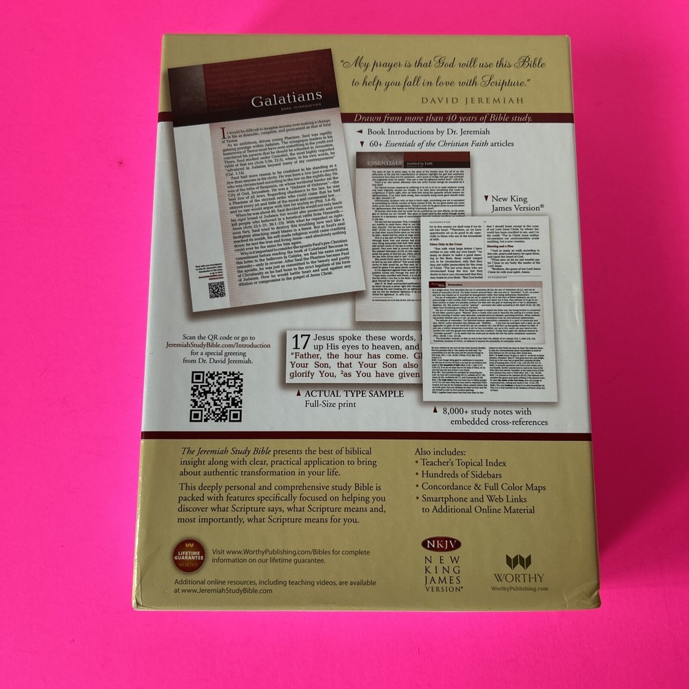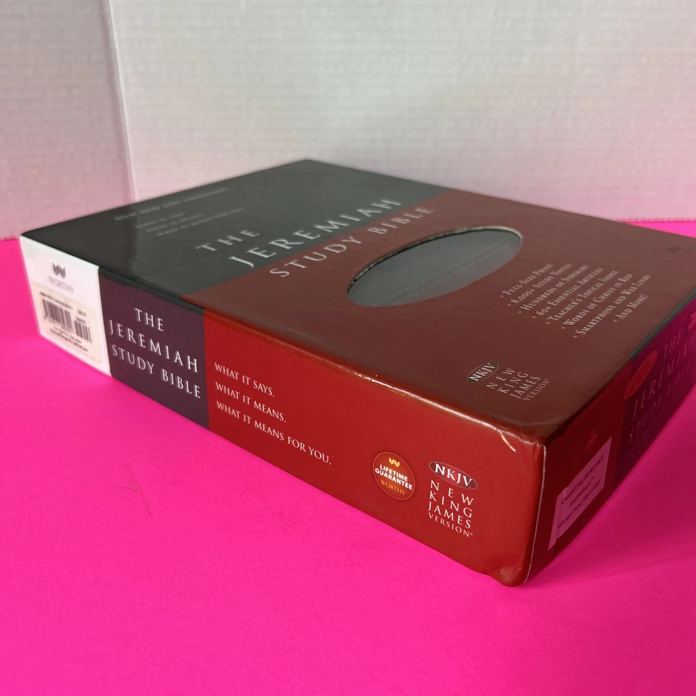 The Jeremiah Study Bible, NKJV: Charcoal/Burgundy LeatherLuxe® w/thumb index: What It Says. What It Means. What It Means For You. Leather Bound This leather bound Study Bible is in Like New condition. No missing pages, no folded pages. Nothing written in the book, no highlighted marks. There is wear to the box. Please check pictures. Please check ALL photos for condition of the book. Stored in a smoke-free pet free home GTD. Expert, professional, safe handling & shipment of your item. You will receive the book shown in the pictures. We will NOT mail your book in a bag GTD. OUR GOAL = GETTING YOU THE EXACT BOOK PICTURED. 1st step: place book inside waterproof mailer 2nd step: Triple bubble wrap focusing on corners to prevent damage during shipping 3rd step: Place book w/bubble wrap inside 2nd waterproof mailer, this will method will not allow the book to get wet unless submerged in water 4th step: Book w/protective measures is then taped onto a SOLID piece of cardboard, this prevents any movement of the book during transit 5th step: Sandwiched between 2 pieces of cardboard taped again, this ensures the edges of the book are protected yet again 6th step: Sandwiched book is placed inside another box with packing material (if necessary). Even if the outside box is damaged the inside protection 99.9% of the time will protect the book from damage. WE HAVE NEVER HAD A RETURN FOR DAMAGE TO A BOOK!! Your customer experience is our #1 priority. We try our best to ensure you receive the exact book shown in the pictures. Your book or item will never be thrown in a poly bag and shipped with no protection guaranteed. Expert, professional, safe handling & shipment of your item included with every purchase. We take pride in our customer service. Your book will be bagged in a way that no other seller on eBay will. Your satisfaction is our number one priority. We WILL spare no expense getting your book described in this listing to your door the safest say possible!! That's our "GoodBook" Promise!! Same day handling time if paid before 5pm EST. Ships out next morning. Drawn from more than 40 years of study, Dr. David Jeremiah, one of America's leading Bible teachers, has produced a deeply personal and comprehensive study Bible packed with features specifically focused to help you discover what Scripture says, what Scripture means and, most importantly, what Scripture means for you. The Jeremiah Study Bible presents the best of biblical insight and study tools along with clear, practical application to bring about authentic transformation in your life.