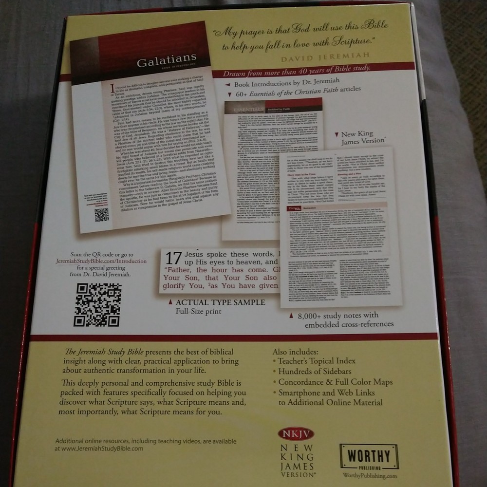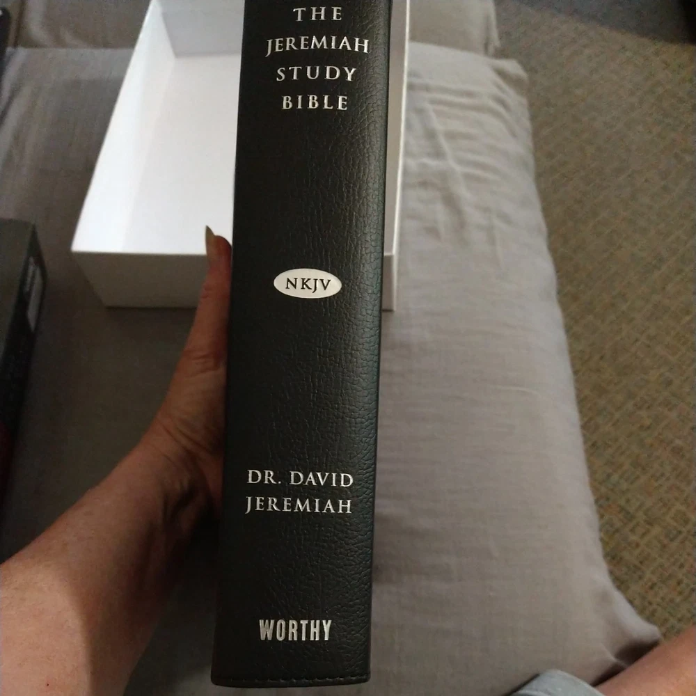 This study Bible is amazing! The genuine leather feels luxurious, and the NKJV text is clear and easy to read. David Jeremiah’s insights make Scripture come alive, helping me understand God’s Word deeper. The condition is excellent—just a tiny flaw on the inner corner, but it looks and feels brand new. The original box is a nice bonus. Highly recommend for anyone wanting a rich, practical Bible study experience!