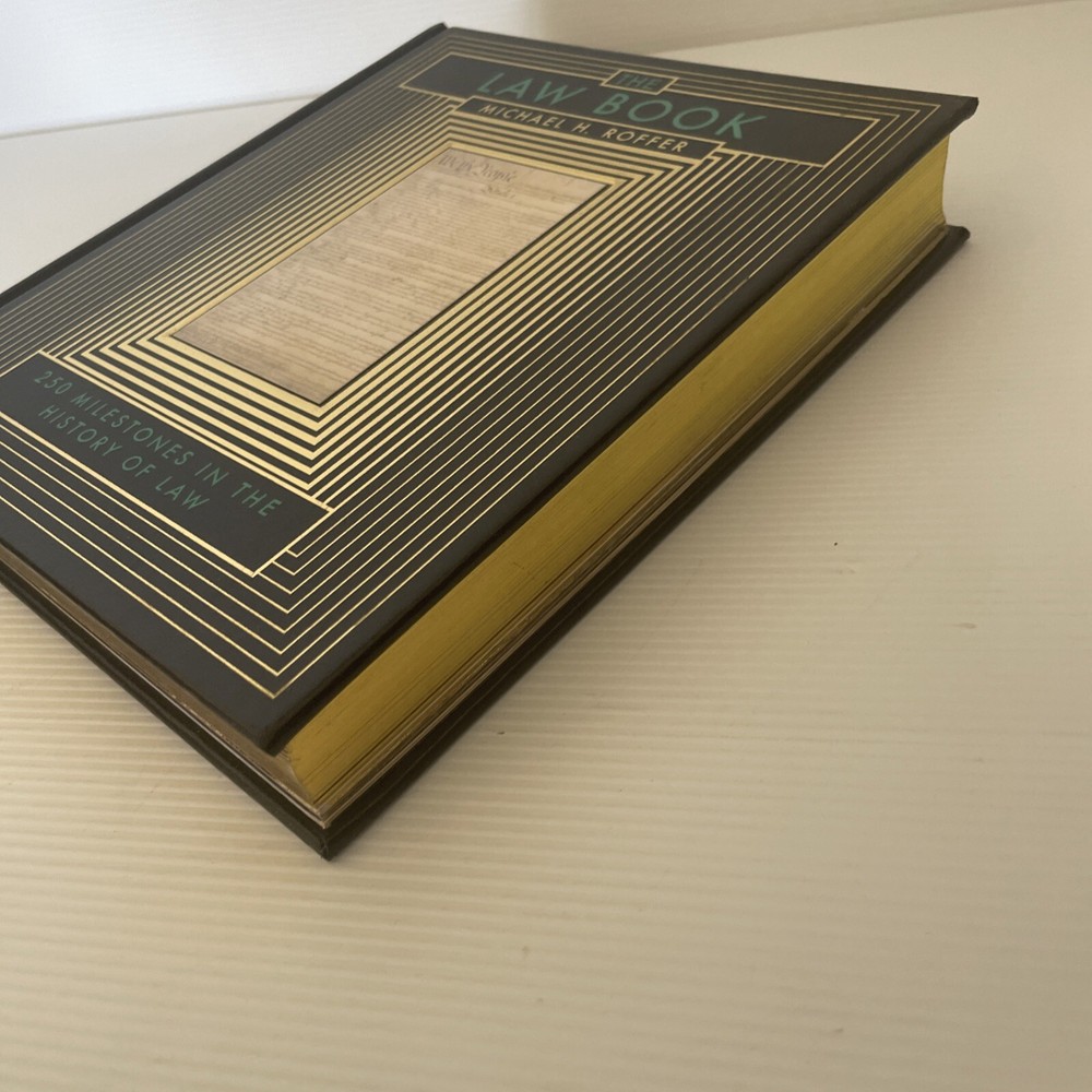 Discover the fascinating journey of law through "The Law Book" by Michael H. Roffer. This leather-bound textbook with gold edging delves into 250 milestones in the history of international law, making it a valuable resource for students and enthusiasts alike. Written in English, this 1st edition publication from Sterling Publishing Co Inc provides a comprehensive look at the subject area, perfect for anyone interested in the field of law.
