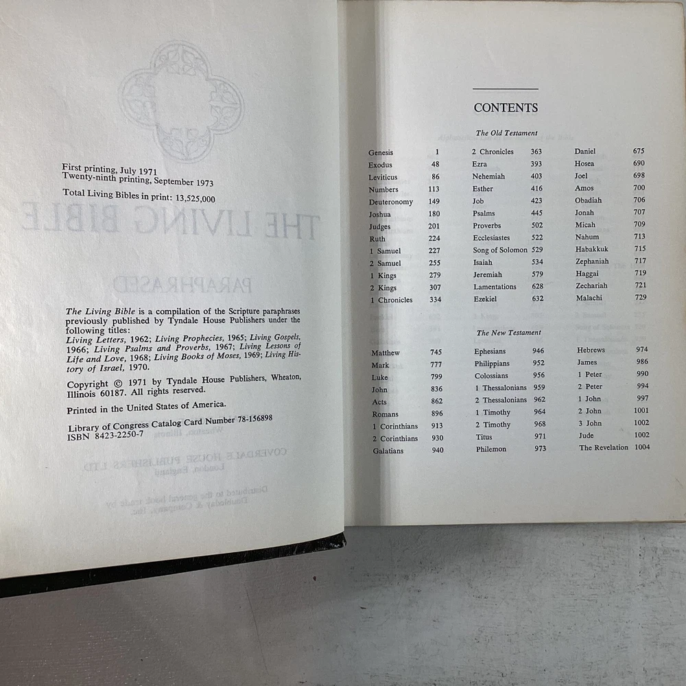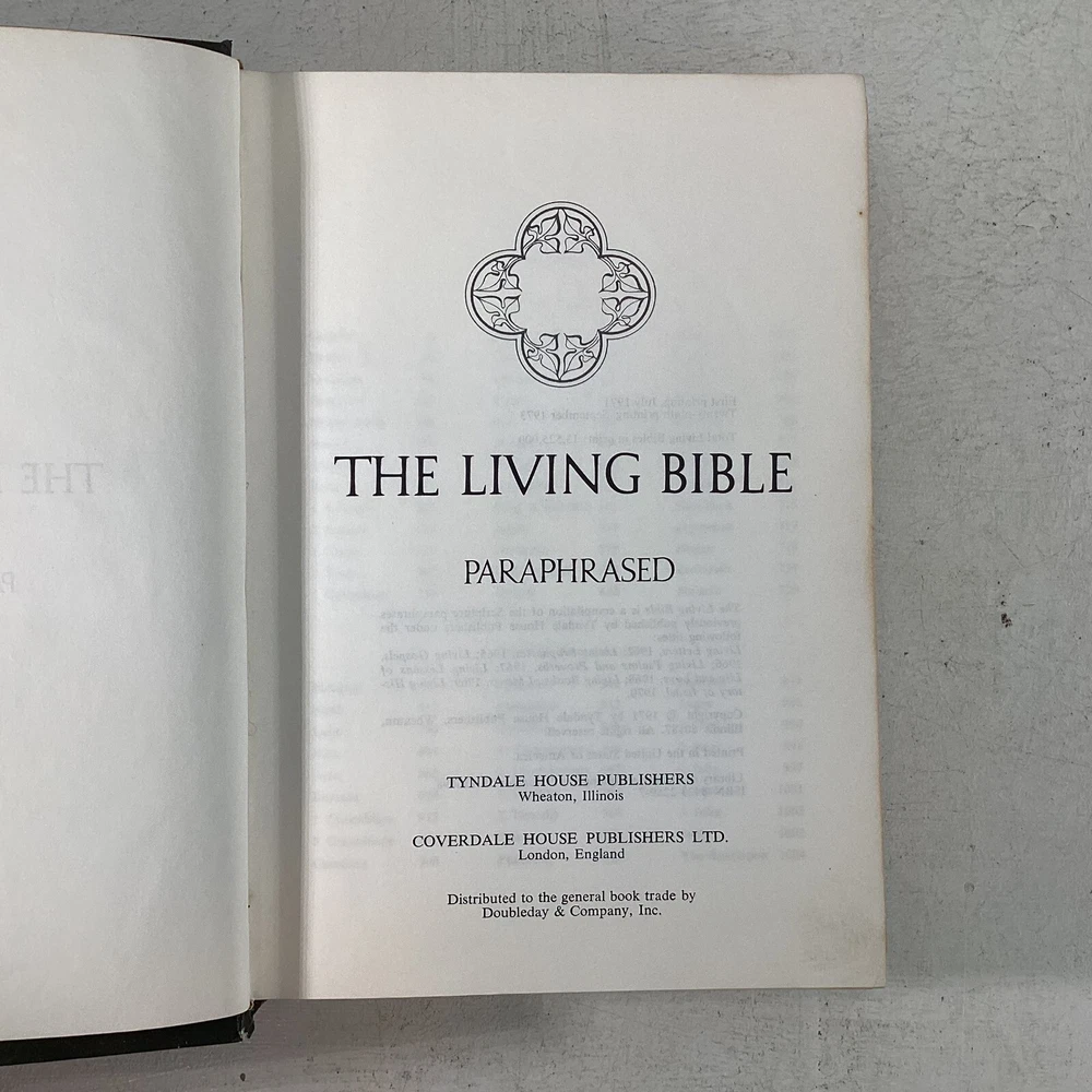 The Living Bible Paraphrased Tyndale Vintage 1973 Green Padded Cover - In Very Good Condition. Size: 8.75" x 6" x 1.75".