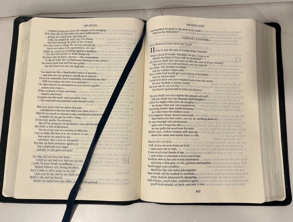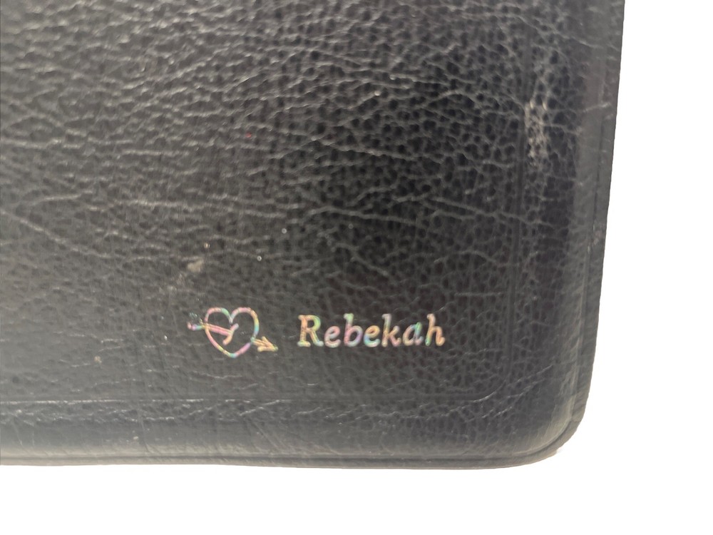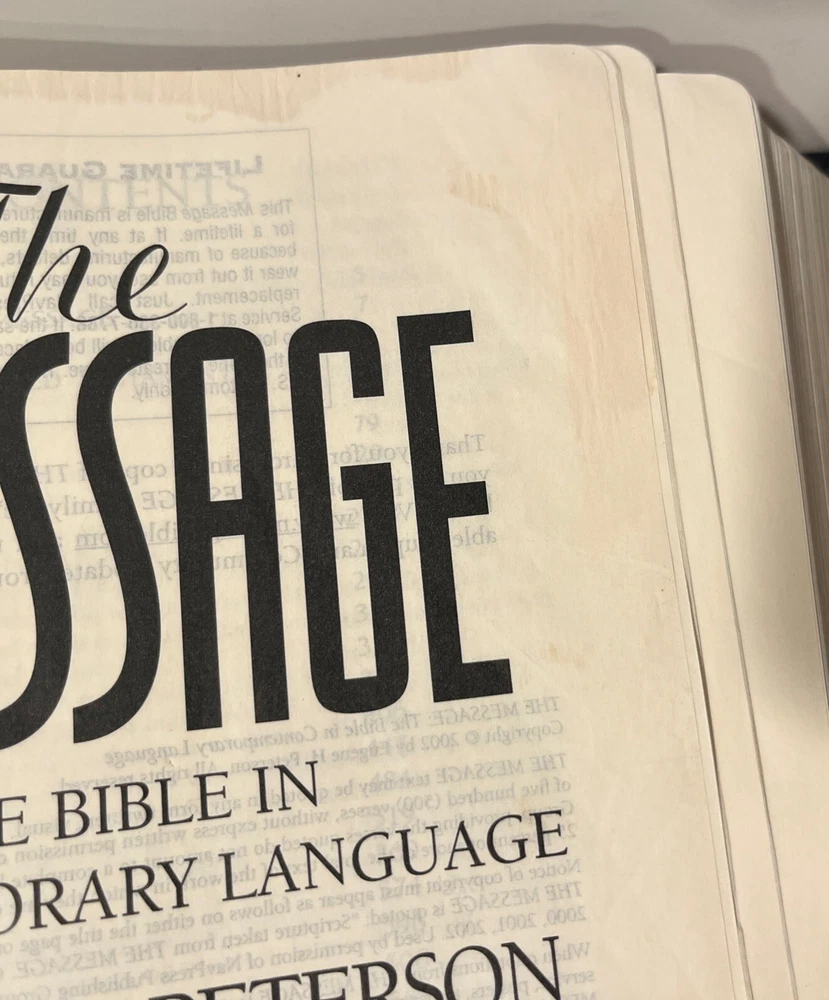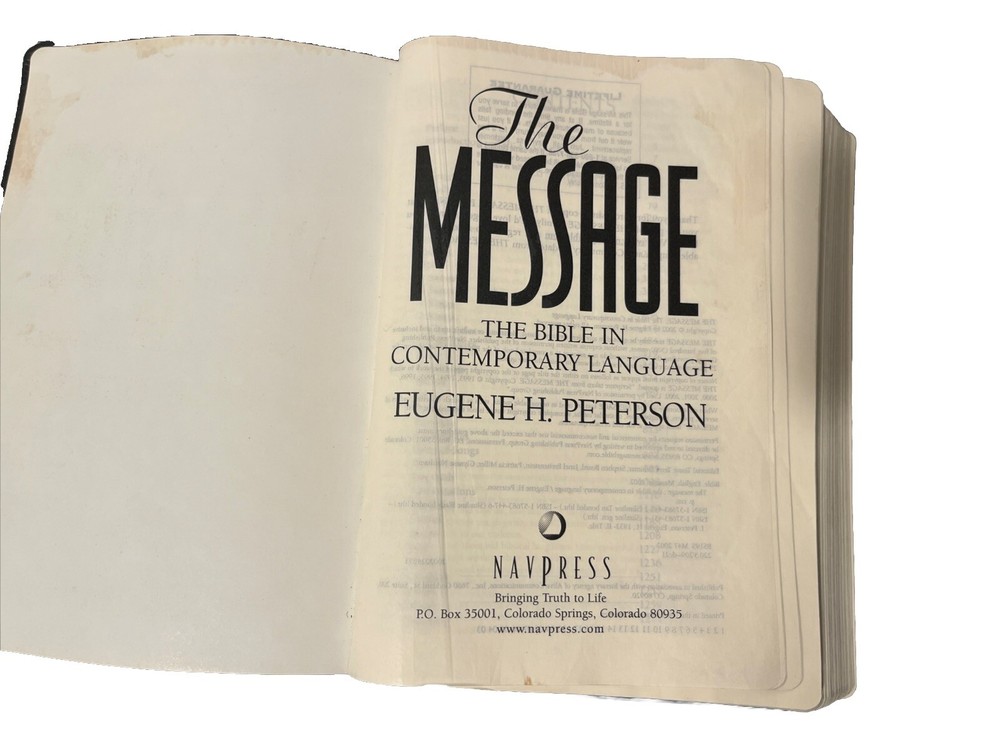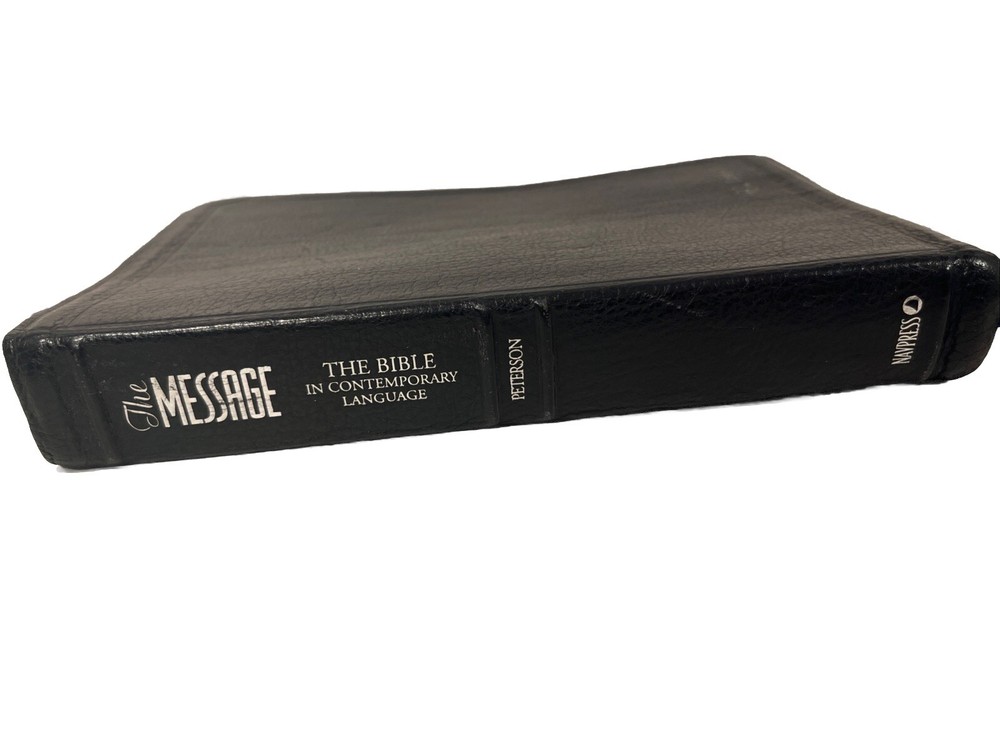 The Message: The Bible In Contemporary Language Eugene Peterson Faux BlueLeather preowned good condition, but does have somewear as shown Rebecca engraved on front