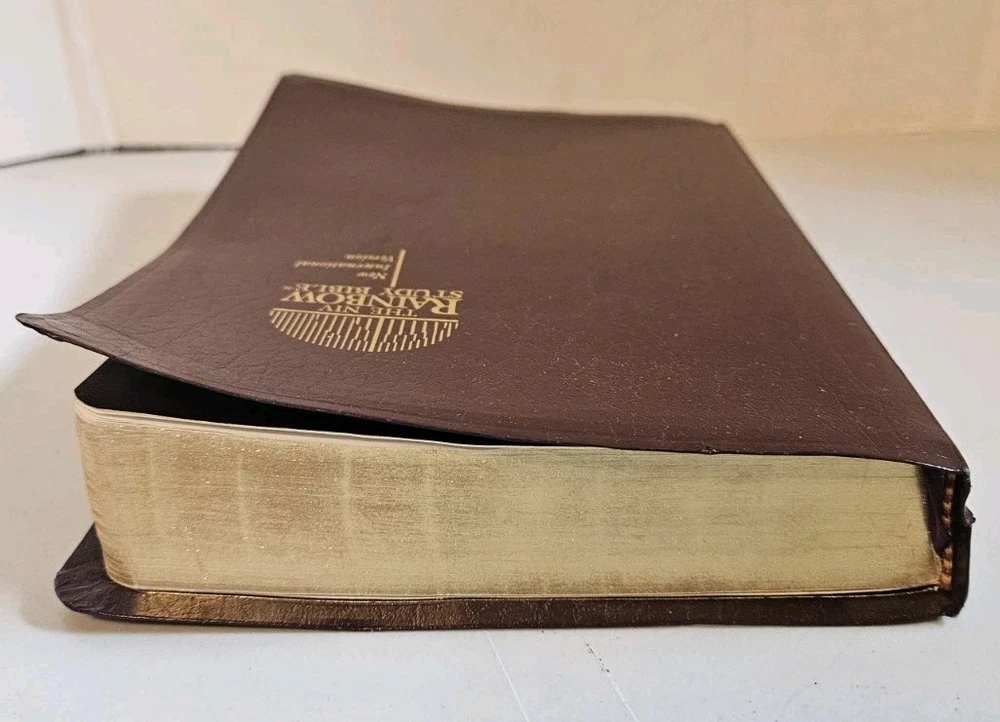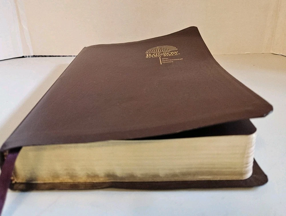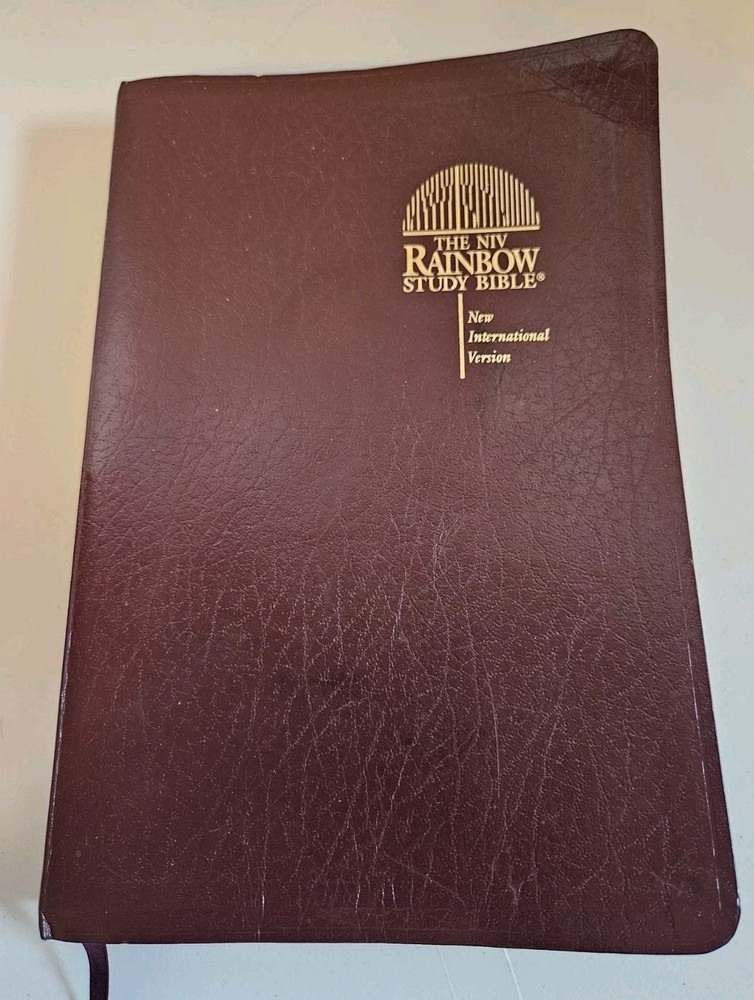 The NIV Rainbow Study Bible in imitation leather, burgundy in color, is a vintage Bible study publication from 1996 by Rainbow Studies International. This Bible, suitable for young adults, ages 9-12, and adults, features a faux leatherbound format with an English translation. Its narrative type is nonfiction, focusing on the New International Version (NIV) of the Bible. With its religious and spiritual genre, this indexed Bible is a valuable resource for readers seeking to deepen their understanding and personal connection to the scriptures.
