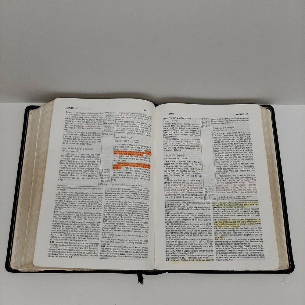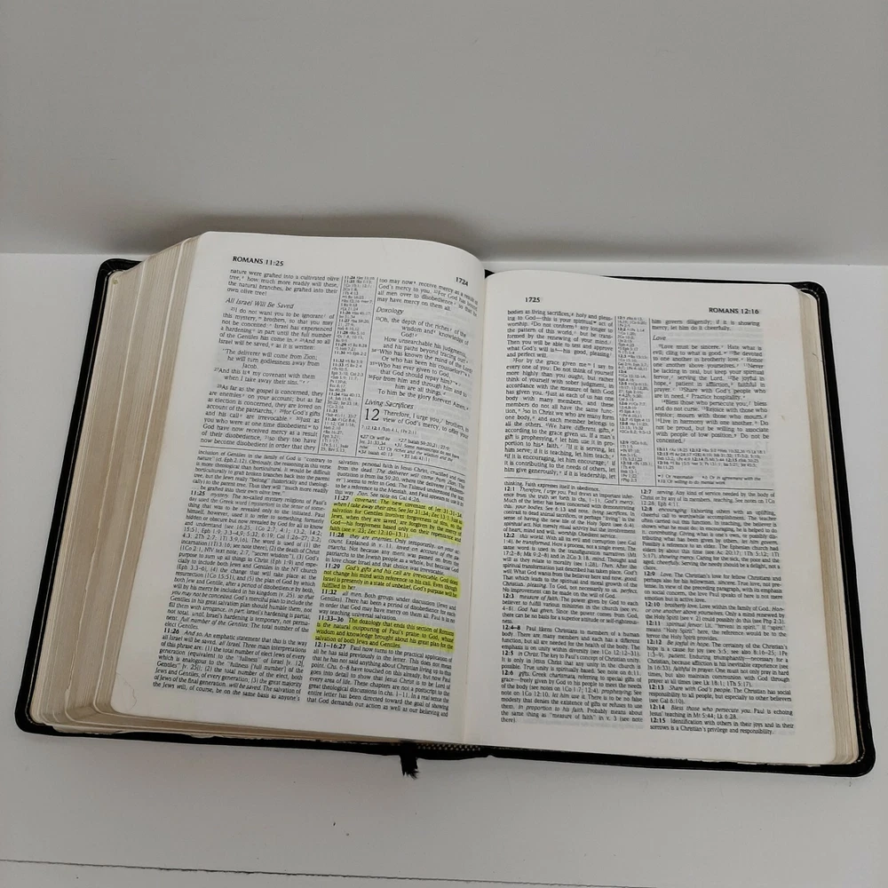 The NIV Study Bible New International Red Letter Edition Zondervan Leather Black. Pre-owned. Some writing and highlighted areas.