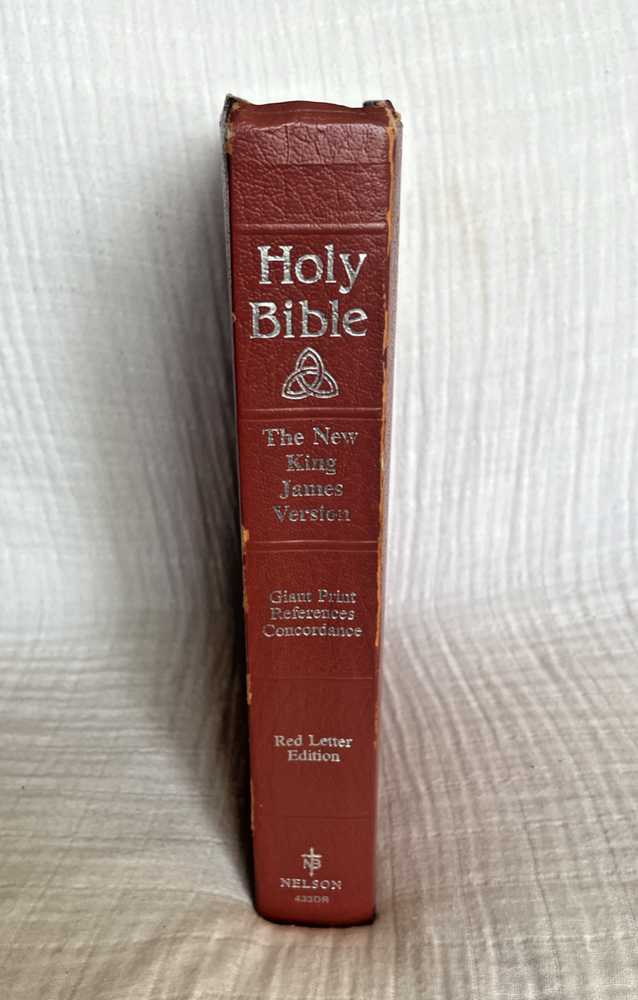 HOLY BIBLE, 1984 The New King James Version Giant Print Reference Edition Words of Christ in Red Good condition vintage Bible.