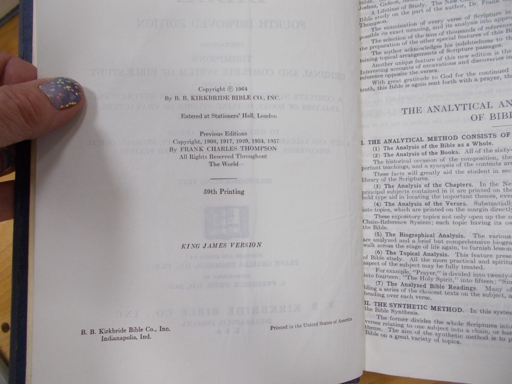 Explore the depths of faith with "The New Chain Reference Bible," fourth improved edition, published by B.B. Kirkbride Bible Co., Inc. in 1964. This leather-bound prayerbook is a treasure for both vintage collectors and those seeking a timeless resource for spiritual growth. Its Self Pronouncing Text series designation makes it a user-friendly guide for both young adults and adults interested in the richness of religion and spirituality. Crafted with care, this Bible features an imported Morocco nylon sewed binding, ensuring durability and a classic feel. Delve into its pages and discover a wealth of knowledge on various topics related to religion and beliefs, all presented in the English language. Whether for personal study or as a meaningful gift, this Bible is a testament to enduring faith and spiritual guidance.