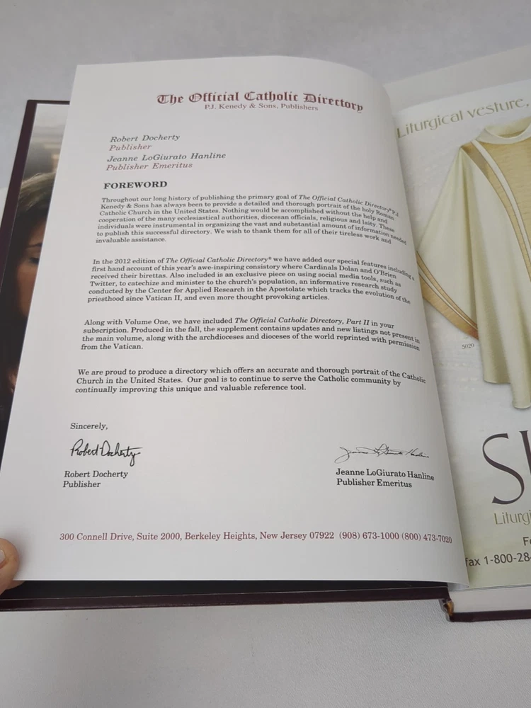 The Official Catholic Directory Anno Domini 2012 by P.J. Kennedy & Sons. The book is in a good, clean condition. Please see the images of the actual item for sale.