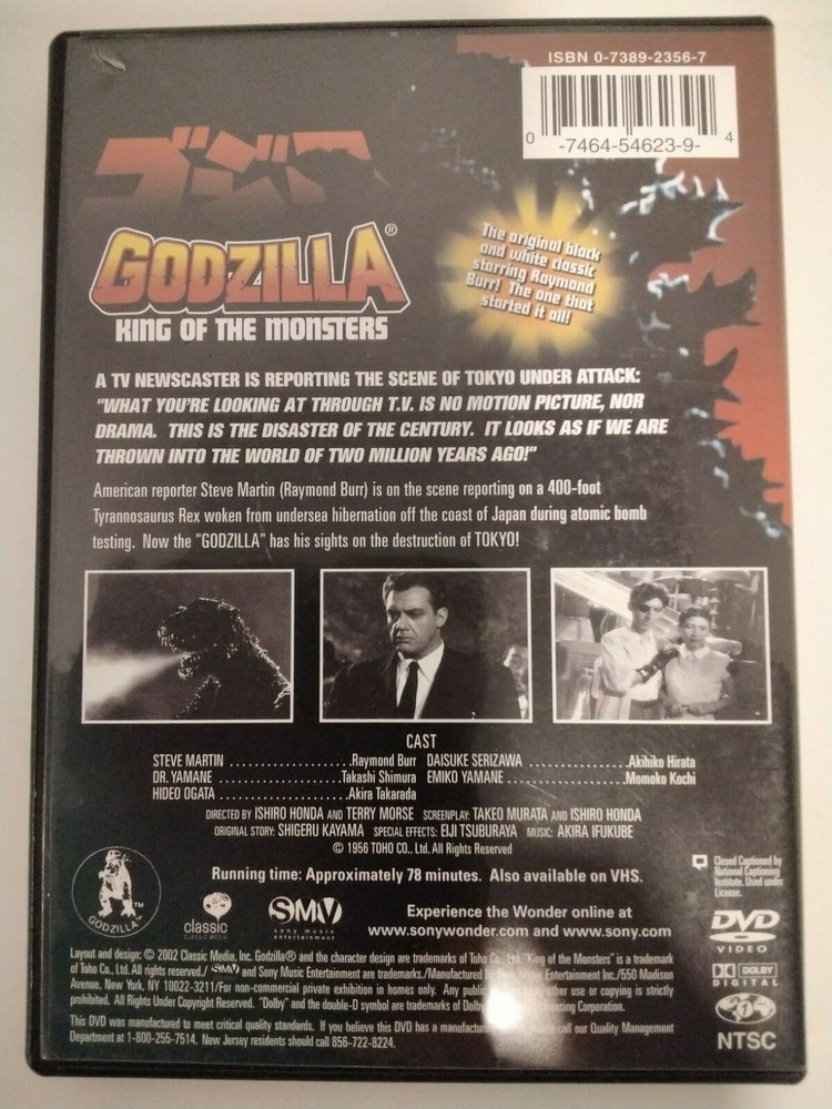 The Original Godzilla King Of The Monsters Classic DVD Used We offer combined shipping for multiple items. Please request a combined invoice before purchasing. We do not charge for handling and only charge actual USPS postage. We appreciate your feedback and our goal is to always provide 5 star service. We will leave the same for all good buyers. If there are any issues with the item you have purchased from us we ask that you contact us first before opening a case or leaving less than favorable feedback. We will work with you to resolve any problems within 24hours.