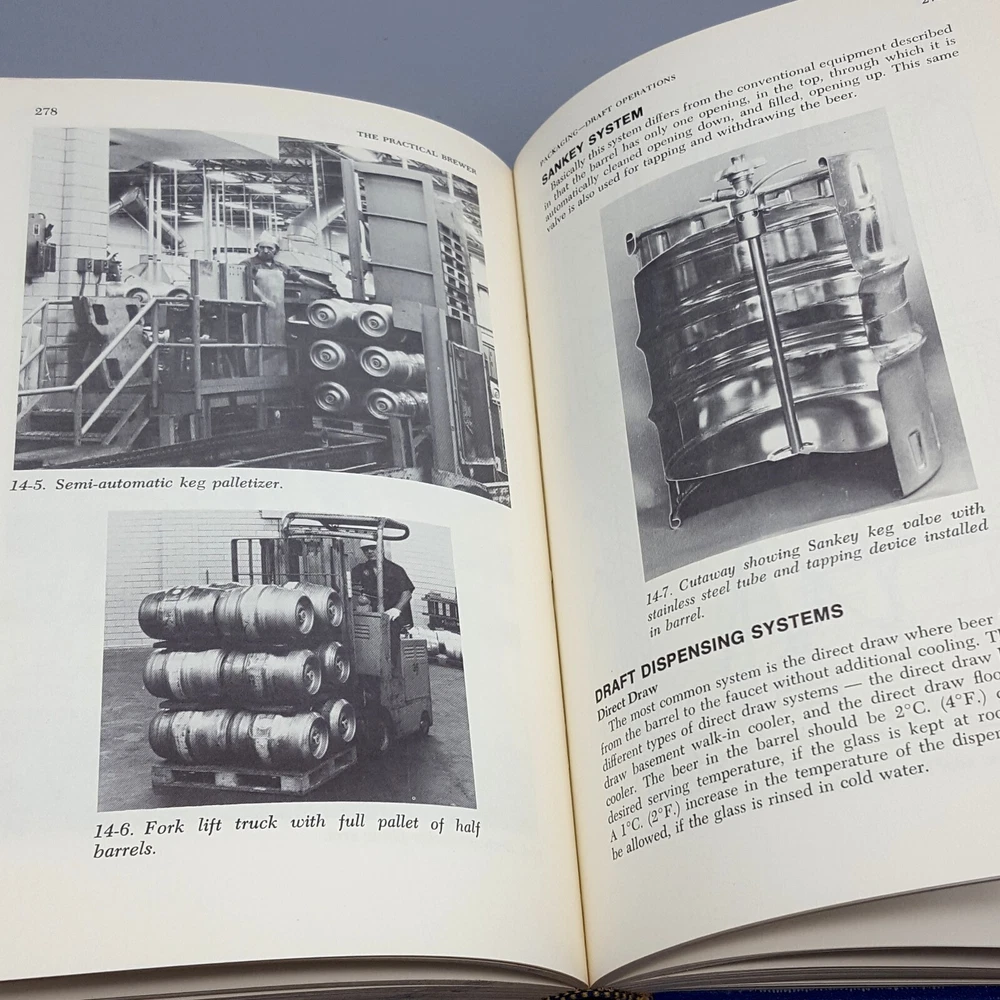 The Practical Brewer 2nd Edition 1977 A Manual for the Brewing Industry by MBAA / Master Brewers Association of the Americas. Faux leather in navy blue with gold symbol and lettering on front and spine. Lightly used with writing blacked out inside front cover and occasional neatly done yellow highlighting. Noted some smudges and marks on the outer page edges, slight bumping of spine ends and cover corners, and a paperclip crease. No other issues - pages clean and tight with NO other marks stains, tears, creases, dog ears, mold nor water damage. Book includes photos and diagrams, charts and tables, conversions, flavor terminology, index - everything you need to know about the science and art of brewing. From smoke-free storage. Thank you for visiting my eBay store. We are happy to bundle orders whenever possible, often use recycled packing, and typically ship in one day.